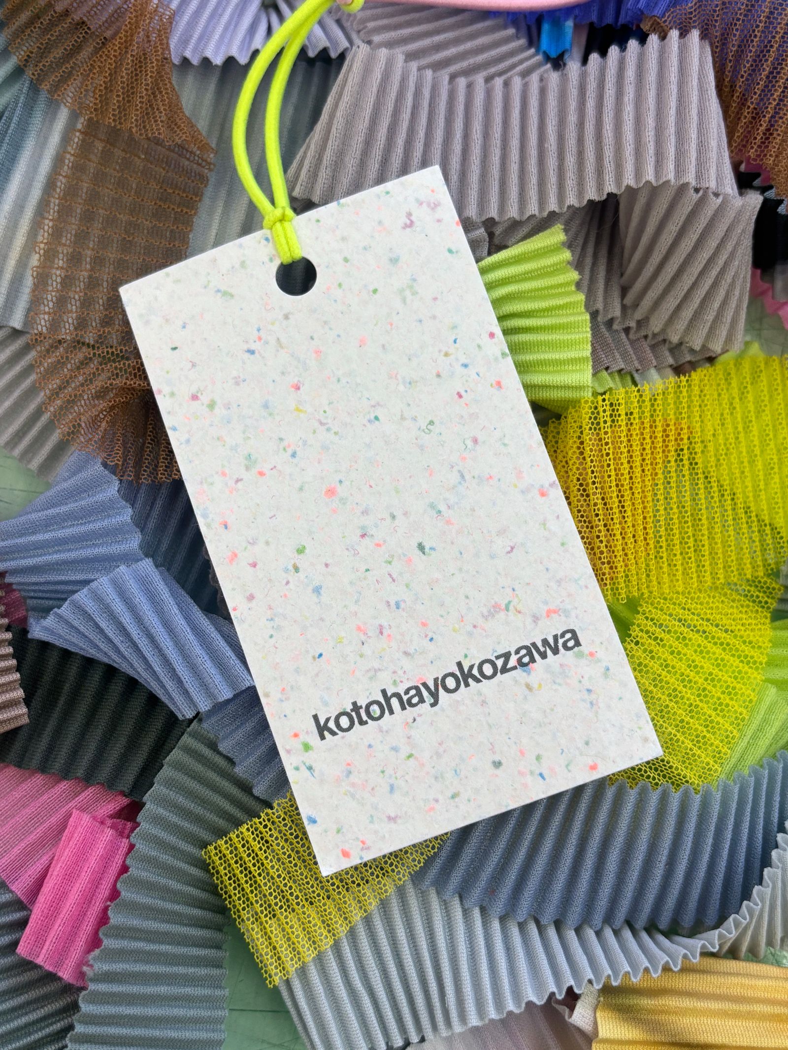 下げ札に関して25AWシーズン以降、todoラインの過去生産で発生した裁断くずを10%含むオリジナルの紙素材を採用しております。