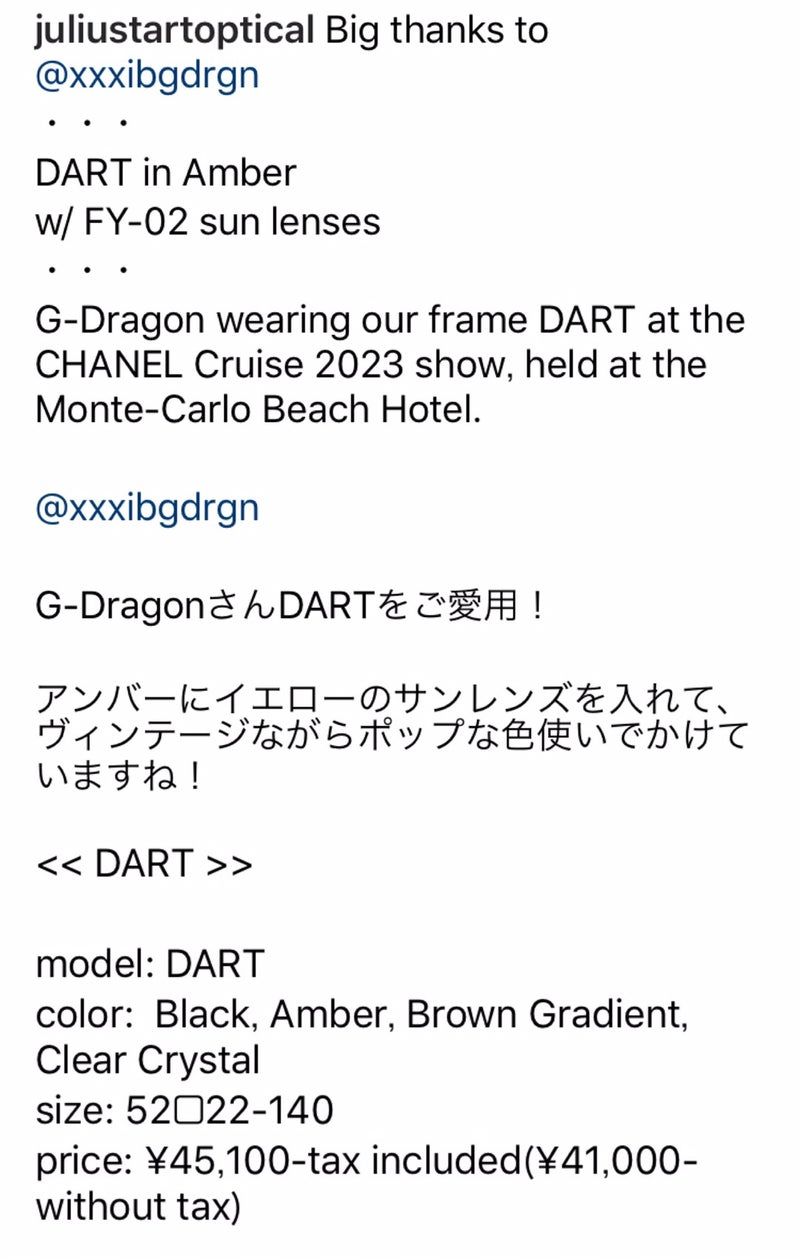【JULIUS TART OPTICAL】韓国アイドルG-DRAGON氏の愛用眼鏡をご紹介!
