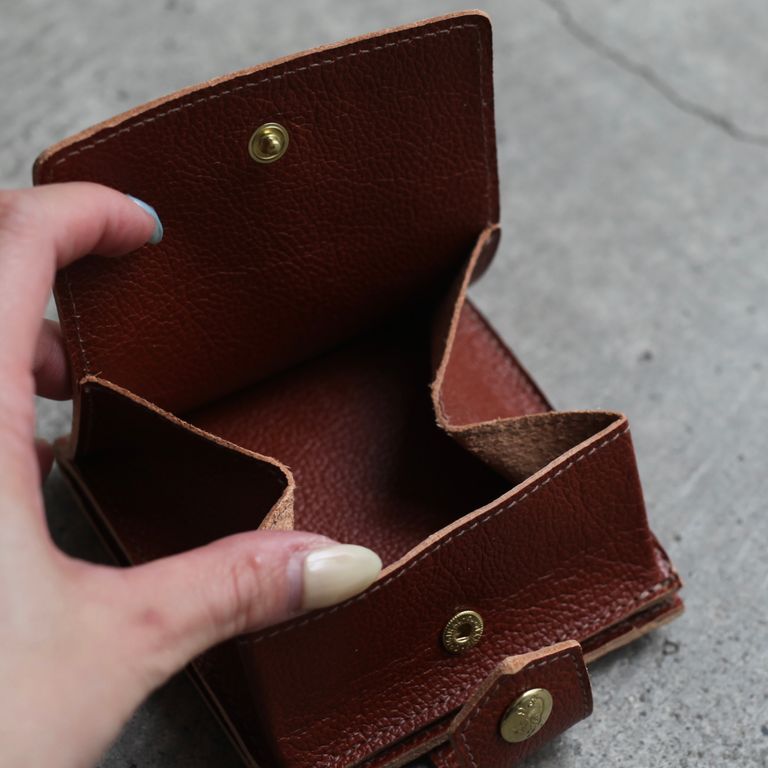 新入荷 残りわずか 定番商品 ラスト1点 UNISEX ギフトラッピング可能 セール対象外商品 IL BISONTE 【残り一点】ウォレット ¥35,200 税込 960 ポイント還元 発送目安日:2-3営業日 この商品は 送料無料 でお届けします 注文 サイズ(採寸)情報 質問する お気に入り サイズ 縦 横 厚み ONE SIZE 9.5cm 10cm 2cm 商品説明 IL BISONTE[イル ビゾンテ]のウォレットです。同ブランド定番人気の本作。一目で中身を確認できる立体的なコインケースを備えた2つ折りのレザーウォレットです。スナップボタンを開けると内側にカードホルダーと札入れが配置されています。キラリと光るゴールドボタンがリッチなムードをプラス。縁にはブランドロゴの型押しが施されています。薄くコンパクトですが、6枚分のカードポケットとボックス型のコインケースで収納力抜群。ポケットや小さいバッグに入れられたい方に◎。レザー特有の経年変化も愉しんでいただけます。オールシーズン飽きずに末永くご愛用いただける秀逸品。ご自身用は勿論、贈り物にも重宝するお奨めのアイテムとなっております。仕様についてコインポケット×1札入れ×1カードスリット×4付属品についてIL BISONTEオリジナル巾着付き IL BISONTE[イル ビゾンテ]についてDESIGNER : Wanny di Fillipo氏FROM : ITALYFOUNDED : 1970年IL BISONTE(イル ビゾンテ)は、バッファローのマークが特徴的なイタリア発の皮革製品ブランドです。このバッファローのマークはイルビゾンテ創業者ワニー・ディ・フィリッポがデザインしたもの。バッファローのマークは、ワニーがこの動物の持つ力強く誇り高いイメージを、ブランドに取り入れようとしたことが理由で使用されています。創始者ワニーの言葉である「雨がふればどちらも濡れ、晴れればどちらも日にあたり、あなたが日焼けすれば、バッグも日に焼けます。あなたのイルビゾンテはあなたの一部になります。」をブランドのコンセプトとしています。世界中で愛用者を増やし続けているIL BISONTEの製品は、質の良い革が使われているので、使用するごとに味が出てくるのも特徴。持つ人が使えば使うほど、それに合わせて製品も変化していくところが、多くの使用者に愛される理由です。その人気は奇抜さのないベーシックなデザインベースは使う人を選ばず、良質な素材を使用していることで高い耐久性による魅力が理由です。 快適に潜む上品な佇まい、職人の手仕事と、温かみがありながらも洗練された雰囲気に仕上げられたプロダクトはユーザーを魅了するクオリティがあり、世界中の人々を魅了し続けています。 ATTENTION(天然素材の革について) 当店で展開しているレザーアイテムはブランドと共に検品を行い、良品アイテムをお届けしております。天然皮革に付き物の小傷、シミ、トラなどを天然素材の証です。生きていた証であるそれぞれの個体の持つ特徴として、革とはこういうものであると感じて頂けますと幸いです。(生産過程での小傷や皺を含む。)なお、これらの症状は天然物には大なり小なりあるものです。下記症状によるレザーアイテムですので、基本的に返品・交換(下記記載の初期日焼け・剥ぎ取り穴以外)はお受けしておりませんので、あらかじめご了承ください。合成皮革(近代的なフェイクレザー)と異なる、自然の恵みである天然皮革をお愉しみ頂けますと幸いです。_ 血筋について皮革の吟面に浮き出ている稲妻のような血管模様です。まさに生きていた証であり、比較的よく見受けられます。_ トラについて首回りに良く見受けられる深いしわの跡がそのまま表れています。(イタリアンレザーでは、トラがあればあるほど美しいと表現されるほど、天然皮革のワイルドさを醸し出しています。)_ バラ傷について生きていた時に擦れたり喧嘩したりしたときの小傷です。個体によって深さや長さ、大小様々です。_ 色ムラについて仕込みの時期や気温などにより染料やその他薬剤の入り方に変化が生まれます。皮革は一枚一枚職人が手作業で作り上げているので、多少の染色ムラやロットブレが起こりやすい資材です。合成皮革には見られない、天然ものならではの症状です。_ 虫刺されについて生前の虫刺されやひっかき傷が完全治癒せずに、軽いヘコミ・クレーターのように残っている場合がございます。_ 穴について※検品時には必ず通しません。穴は、剥ぎ取りの際に空いたものと、牛の種類によっても異なりますが、剥ぎ取りの際に穴が空くものもございます。_ 日焼けについて※初期段階で検品時には基本的に通しません。特にタンニン鞣しのヌメ革の場合は、紫外線や光により経年変化していきます。 詳細情報 カラー 赤茶 素材 COW LEATHER ブランド IL BISONTE 品番 54202310540_31[赤茶] カテゴリ 財布・小物 > 財布 性別 ユニセックス 返品 返品可能条件はこちら ラッピング 可能 発送目安日 2-3営業日 配送方法 佐川急便(送料について) お支払い方法 本商品でご利用可能な決済方法は下記となります。各お支払い方法についての詳細はショッピ