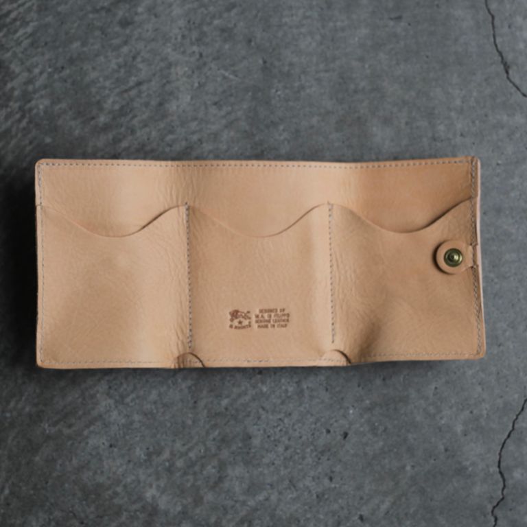 新入荷 残りわずか 定番商品 ラスト1点 UNISEX ギフトラッピング可能 セール対象外商品 IL BISONTE 【残り一点】ウォレット ¥39,600 税込 1,080 ポイント還元 発送目安日:2-3営業日 この商品は 送料無料 でお届けします 注文 サイズ(採寸)情報 質問する お気に入り サイズ 縦 横 厚み ONE SIZE 8cm 9cm 3cm 商品説明 IL BISONTE[イル ビゾンテ]のウォレットです。同ブランド定番人気の本作。立体的に開くコインケースを外付けした、手のひらサイズの三つ折りレザーウォレットです。正面には、立体的に施されたコインケースは、ボックス型なので、開閉のしやすさはもちろん、コインの取り出しやすさもピカイチ。反対側には、お札入れと3枚分の縦差しカードホルダー。お札とカードを出し入れする方向が同じなので、動線もスムーズで、充実感のある収納力です。またコインケースとの間には隠しポケットがあるので、切符やお守りなどを入れておくのに◎。コンパクトなフォルムに札入れやカードケースも備えた、コインをたっぷり入れてもスリムなルックスをキープできるのが魅力的。レザー特有の経年変化も愉しんでいただけます。オールシーズン飽きずに末永くご愛用いただける秀逸品。ご自身用は勿論、贈り物にも重宝するお奨めのアイテムとなっております。仕様について外側にコインポケット×1札入れ×1カードスリット×3付属品についてIL BISONTEオリジナル巾着付き IL BISONTE[イル ビゾンテ]についてDESIGNER : Wanny di Fillipo氏FROM : ITALYFOUNDED : 1970年IL BISONTE(イル ビゾンテ)は、バッファローのマークが特徴的なイタリア発の皮革製品ブランドです。このバッファローのマークはイルビゾンテ創業者ワニー・ディ・フィリッポがデザインしたもの。バッファローのマークは、ワニーがこの動物の持つ力強く誇り高いイメージを、ブランドに取り入れようとしたことが理由で使用されています。創始者ワニーの言葉である「雨がふればどちらも濡れ、晴れればどちらも日にあたり、あなたが日焼けすれば、バッグも日に焼けます。あなたのイルビゾンテはあなたの一部になります。」をブランドのコンセプトとしています。世界中で愛用者を増やし続けているIL BISONTEの製品は、質の良い革が使われているので、使用するごとに味が出てくるのも特徴。持つ人が使えば使うほど、それに合わせて製品も変化していくところが、多くの使用者に愛される理由です。その人気は奇抜さのないベーシックなデザインベースは使う人を選ばず、良質な素材を使用していることで高い耐久性による魅力が理由です。 快適に潜む上品な佇まい、職人の手仕事と、温かみがありながらも洗練された雰囲気に仕上げられたプロダクトはユーザーを魅了するクオリティがあり、世界中の人々を魅了し続けています。 ATTENTION(天然素材の革について) 当店で展開しているレザーアイテムはブランドと共に検品を行い、良品アイテムをお届けしております。天然皮革に付き物の小傷、シミ、トラなどを天然素材の証です。生きていた証であるそれぞれの個体の持つ特徴として、革とはこういうものであると感じて頂けますと幸いです。(生産過程での小傷や皺を含む。)なお、これらの症状は天然物には大なり小なりあるものです。下記症状によるレザーアイテムですので、基本的に返品・交換(下記記載の初期日焼け・剥ぎ取り穴以外)はお受けしておりませんので、あらかじめご了承ください。合成皮革(近代的なフェイクレザー)と異なる、自然の恵みである天然皮革をお愉しみ頂けますと幸いです。_ 血筋について皮革の吟面に浮き出ている稲妻のような血管模様です。まさに生きていた証であり、比較的よく見受けられます。_ トラについて首回りに良く見受けられる深いしわの跡がそのまま表れています。(イタリアンレザーでは、トラがあればあるほど美しいと表現されるほど、天然皮革のワイルドさを醸し出しています。)_ バラ傷について生きていた時に擦れたり喧嘩したりしたときの小傷です。個体によって深さや長さ、大小様々です。_ 色ムラについて仕込みの時期や気温などにより染料やその他薬剤の入り方に変化が生まれます。皮革は一枚一枚職人が手作業で作り上げているので、多少の染色ムラやロットブレが起こりやすい資材です。合成皮革には見られない、天然ものならではの症状です。_ 虫刺されについて生前の虫刺されやひっかき傷が完全治癒せずに、軽いヘコミ・クレーターのように残っている場合がございます。_ 穴について※検品時には必ず通しません。穴は、剥ぎ取りの際に空いたものと、牛の種類によっても異なりますが、剥ぎ取りの際に穴が空くものもございます。_ 日焼けについて※初期段階で検品時には基本的に通しません。特にタンニン鞣しのヌメ革の場合は、紫外線や光により経年変化していきます。 詳細情報 カラー ヌメ 素材 COW LEATHER ブランド IL BISONTE 品番 5452404640_20[ヌメ] カテゴリ 財布・小物 > 財布 性別 ユニセックス 返品 返品可能