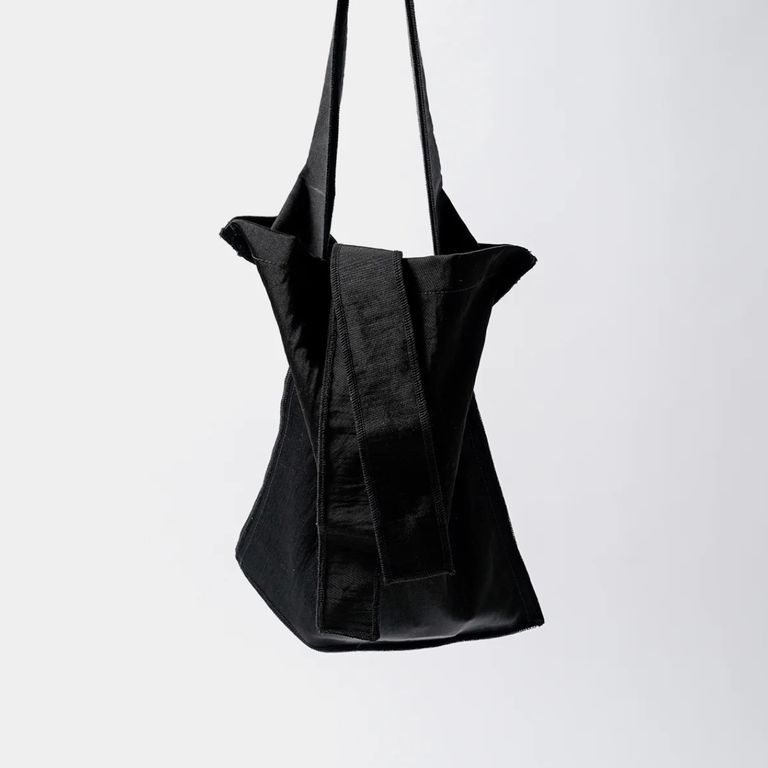 ウェアを製造する縫製工場にバッグの仕様を依頼することでバッグメーカーにも服メーカーにも無い、類を見ない空気感漂う本作。 裏返したようなデザインがポイントのワンショルダートートバッグです。