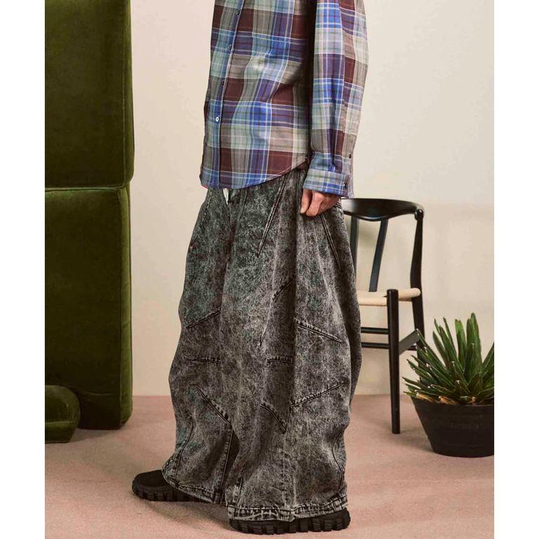 前、横、後、ディティールに至るまで、これでもかとダーツを施すことした本作。デザイン性の高さに一役買うのはもちろん、独特の膨らみ感を演出した唯一無二のシルエットのバルーンデニムパンツです。圧倒的な存在感でスタイリングの主役間違い無しの1本です。