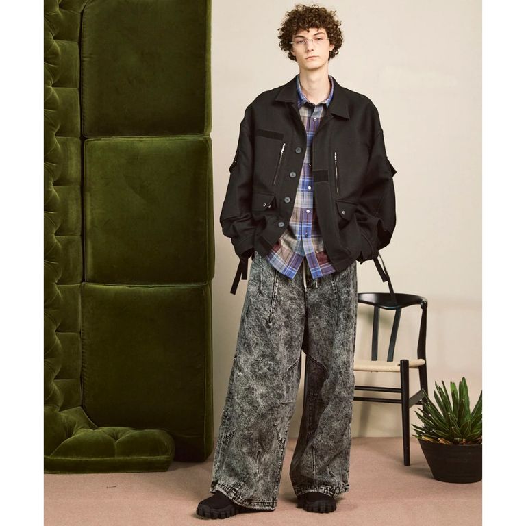 特殊な薬剤を使用した染色加工とバイオウォッシュ、ブリーチに水洗いと、複数の薬剤を使い分けた洗い加工を組み合わせ作成。何度も染色と脱色を繰り返すことで、単純な加工では出ない奥行きのある色合いが特徴。幅広いシーズンでご愛用いただけるお奨めアイテムとなっております。