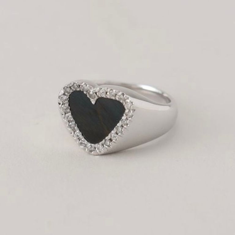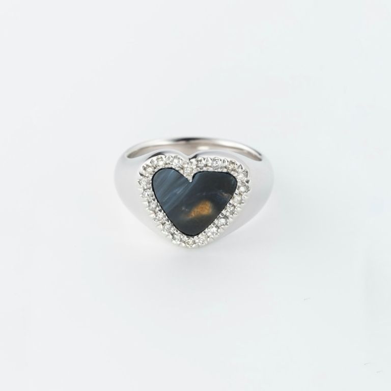【お取り寄せ注文可能】Diamond Heart Stone Ring(BLACK×SILVER)