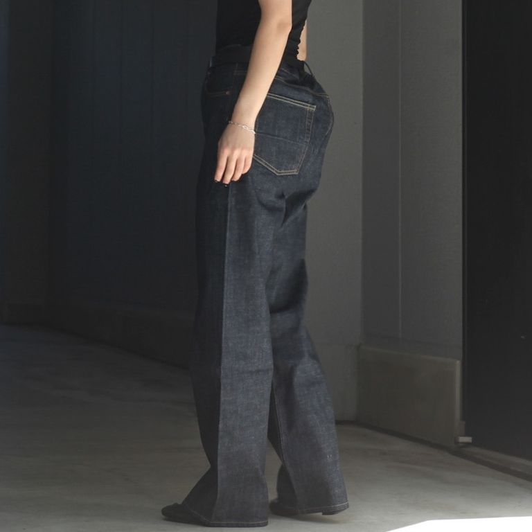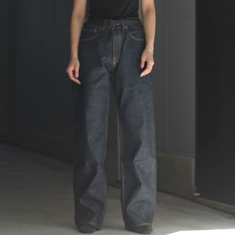 ヴィンテージの風合いを実現するために特別な洗浄方法で仕上げられています。イタリア製デニムで生産されており、リラックスしたワイドレッグフィットです。また、股上にゆとりを持たせ、ボリュームのあるワイドストレートシルエットとなっております。