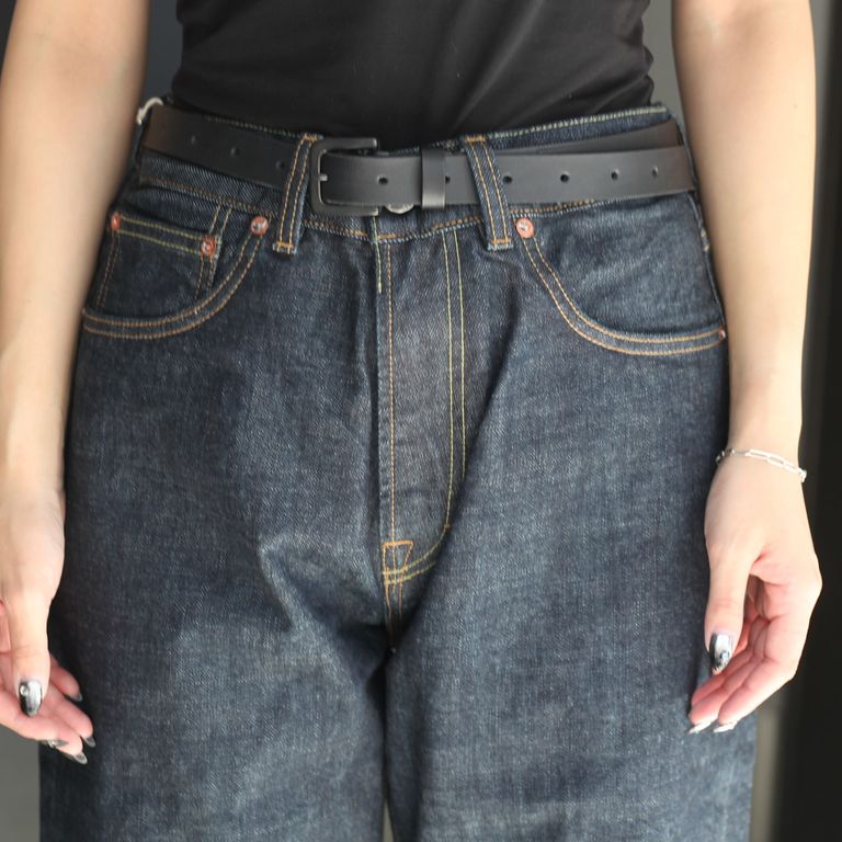 YKKのジップフライ、金属リベット、補強されたバックポケット、ブランドオリジナルのエンボスパッチが特徴的。デニム特有の経年変化も愉しんでいただけます。オールシーズンでご愛用いただけるお奨めアイテムとなっております。