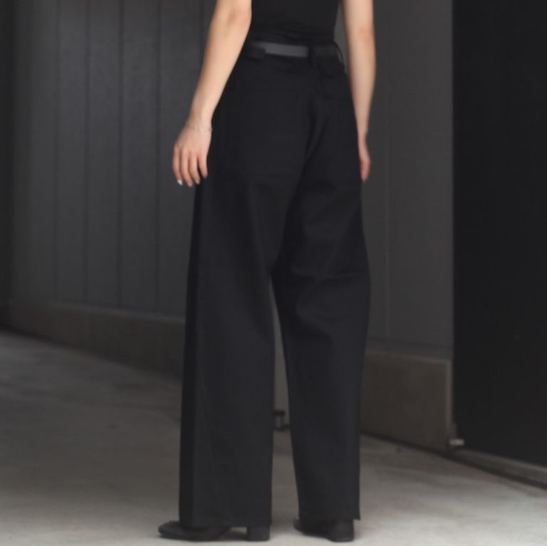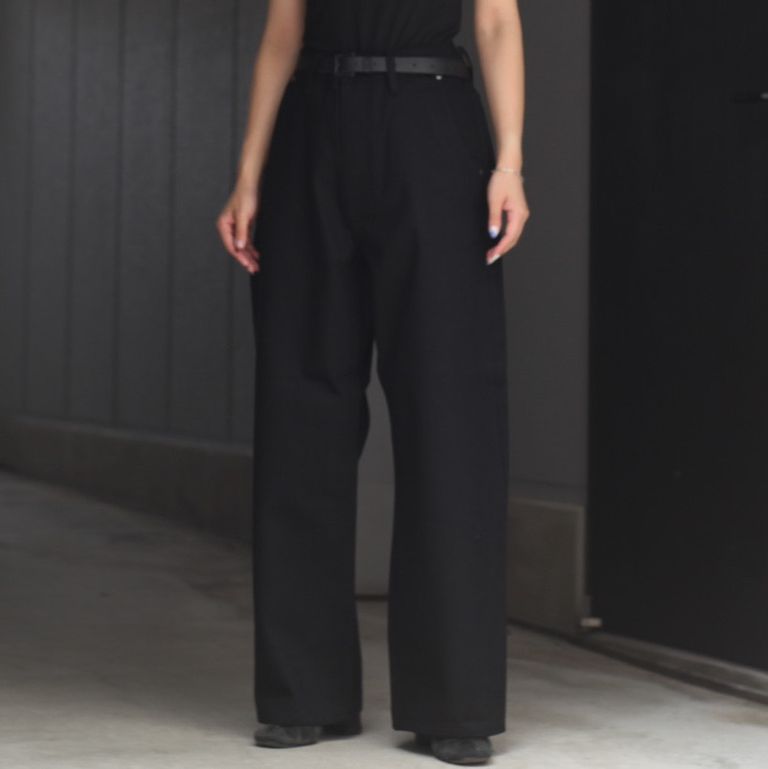 やや浅めの股下がワイドレッグのシルエットにリフト感を与えます。デニム特有の経年変化を愉しんでいただけます。オールシーズンで着用いただけるアイテムとなっております。