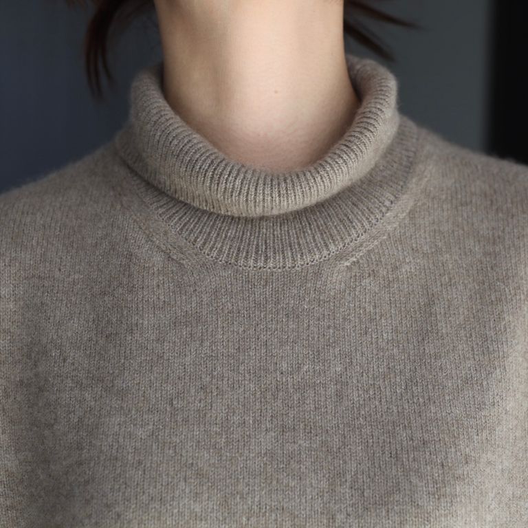 カシミヤとカシミヤより高級とされるセーブルの毛をブレンドした素材を使用し製作を行なった本作。上質なタートルネックセーターです。