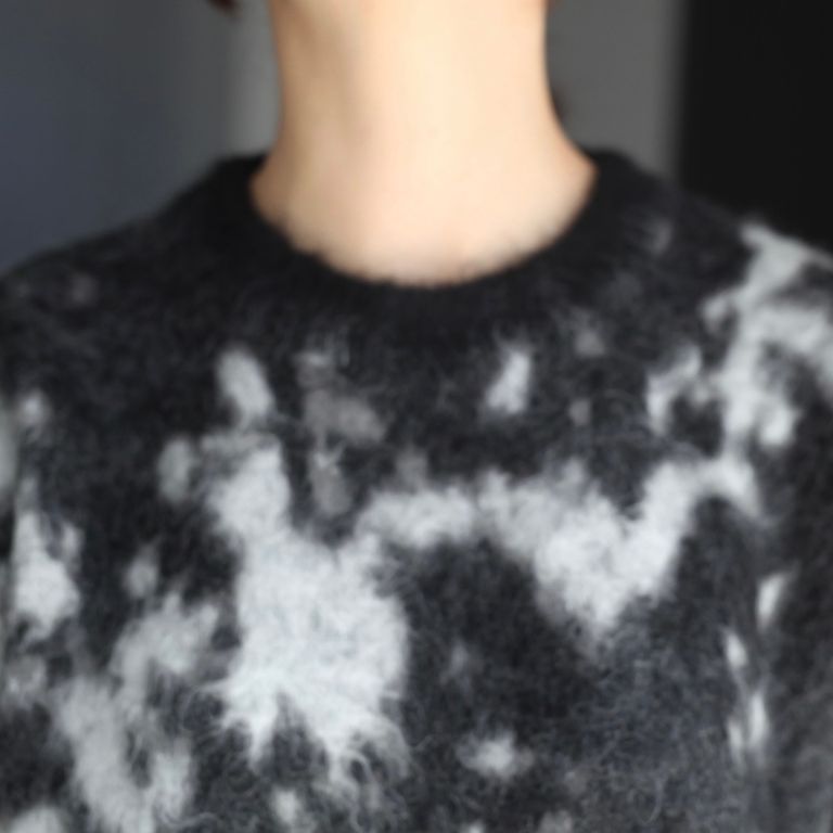 同ブランドで定番的に展開しているジャガードモヘアを使用し製作をおこなった本作。ボリュームのあるゆったりとしたシルエットのクルーネックセーターです。