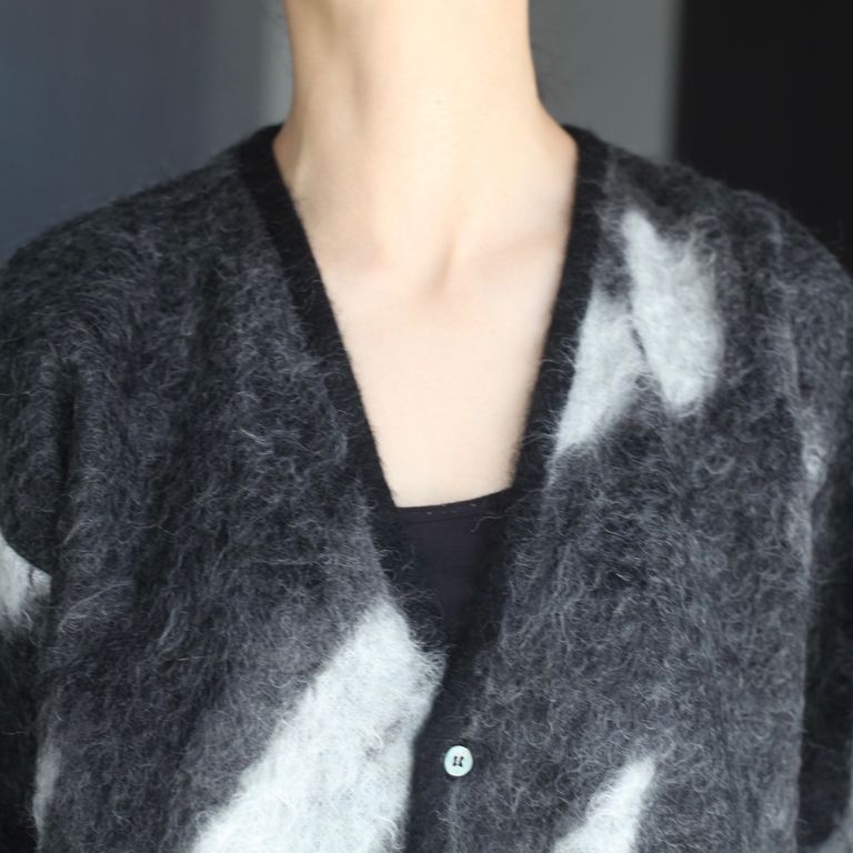同ブランドで定番的に展開しているジャガードモヘアを使用し製作をおこなった本作。ボリュームのあるゆったりとしたシルエットのカーディガンです。