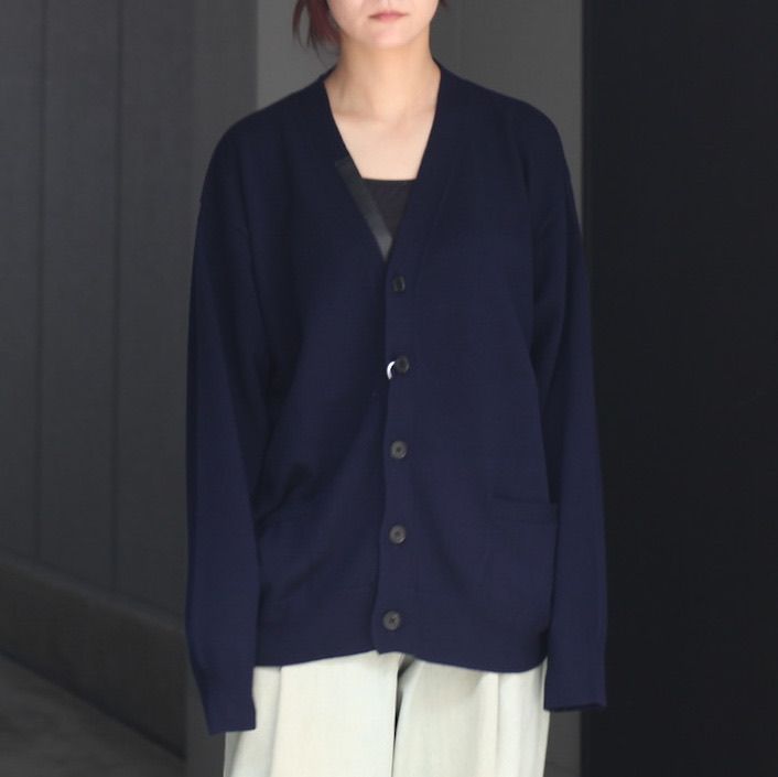 平均繊度が16μクラスのカシミヤに匹敵する希少な超極細ウールを使用し製作を行なった本作。エクストラスーパーファインウールのハイゲージカーディガンです。
