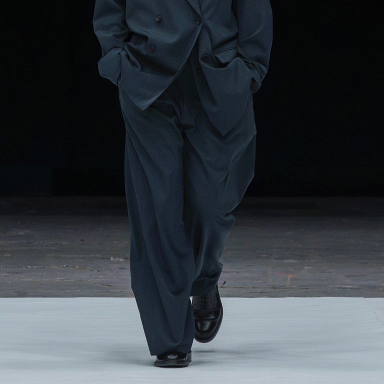 上質なウール素材を使用し製作を行なった本作。2タックのイージートラウザーズです。