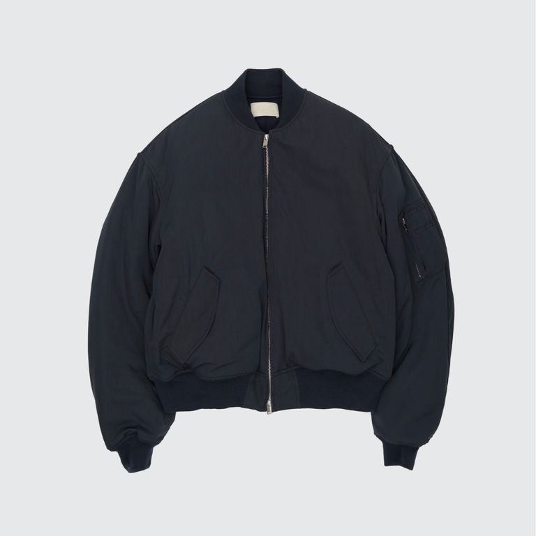 従来よりサイズ感をコンパクトにマイナーチェンジしています。通常ナイロンツイルを使用するところにウールギャバジンを使用し、肩、外袖ハギ、脇には綿テープを仕込み、洗いをかけることで縮ませてナイロンのようなパッカリングを表現しています。出来る限りミニマルにするためフロントと袖のファスナーはムシ隠しにし、品のあるフライトジャケットに仕上がっています。幅広いシーズンでご愛用いただけるお奨めアイテムとなっております。