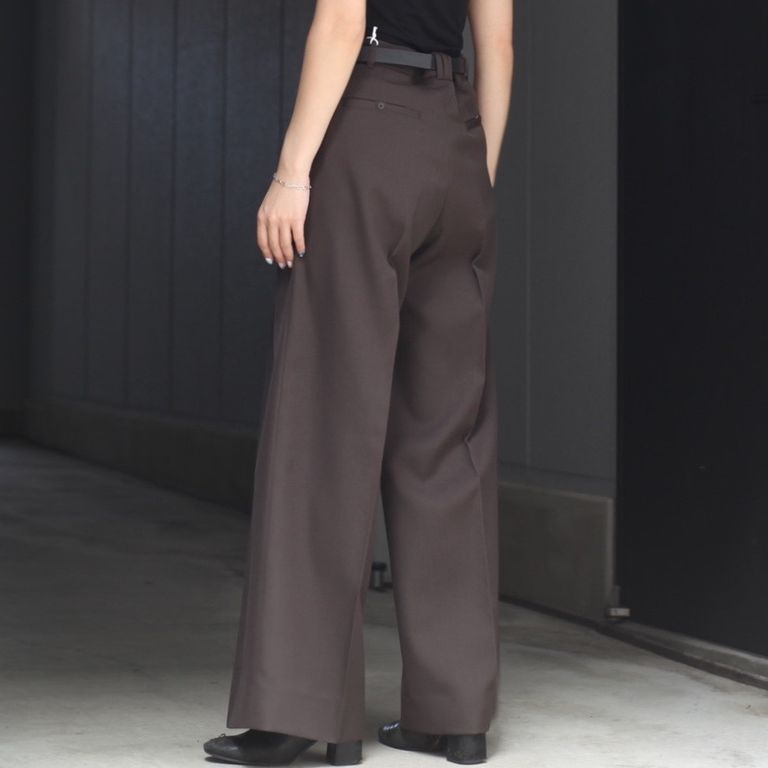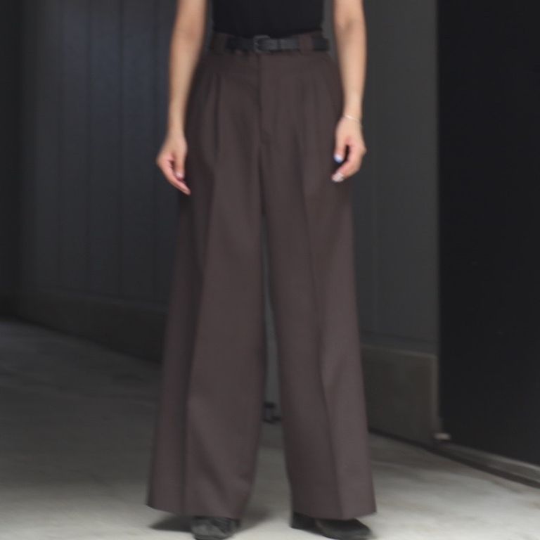 上質なウール素材を使用し製作を行なった本作。3タックのワイドトラウザーズです。