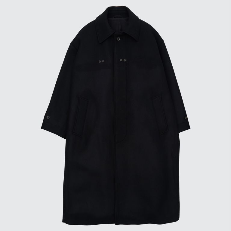 厚みのあるウールメルトン素材を使用し製作を行なった本作。ボリュームを持たせたビッグバルマカーンコートです。
