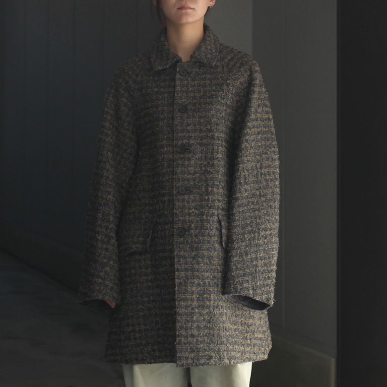 MOVIE 残りわずか 2025AW COLLECTION ラスト1点 UNISEX YOKE 【残り一点】Needlepunched Cotton Plaid Cut Off Coat ¥93,500 税込 2,550 ポイント還元 発送目安日:2-3営業日 この商品は 送料無料 でお届けします 注文 サイズ(採寸)情報 質問する お気に入り サイズ 裄丈 身幅 着丈 1(XS) 83cm 62cm 88cm 2(S) 85cm 64cm 90cm 3(M) 87cm 66cm 92cm 商品説明 YOKE[ヨーク]の二ードルパンチコットンプレイドカットオフコートです。ニードルパンチ加工が施されたチェック生地を使用し製作を行なった本作。ツイードのような表情が特的なコートです。ボンディングされた生地のため縫製部分は全てカットオフ仕様。幅広いシーズンでご愛用いただけるお奨めアイテムとなっております。生地について NEEDLEPUNCHED COTTON PLAID TWEED 3色の異なる色の糸を1本の糸に撚り合わせて配色した3つ杢チェック生地。ウールツイードの様な表情に加え、ソフトで膨らみのある素材です。その2色のチェック生地をニードルパンチ加工施しました。ニードルパンチの機械で緯糸を生地の表に掻き押し出したものを更にもう1回ニードルパンチをしてチェックの柄がボヤけるようにしています。 YOKE[ヨーク]についてDESIGNER : 寺田典夫氏FROM : JAPANFOUNDED : 2018年素材やパターンに拘り、スタンダードなアイテムに芸術的な観点、コンテンポラリーな要素をプラスして洗練されたアイテムを展開するユニセックスブランド。ブランド名の由来は、「 繋ぐ」「絆」「洋服の切り替え布」といった意味があり、ブランドのコンセプトに掲げております。デザイン、原料、糸生地、裁断、縫製、仕上げと、製品になるまでの工程に、多くの人が関わっており、それらの工程をしっかりと把握して、ブランド、ショップ、お客様などが全てが繋がっていくことでできあがるプロダクトということを、大切に考えております。「モノがヒトをつなぎ、ヒトがヒトをつなぎ、ヒトがモノをつなぐ」という想いが込められて製作が進められたブランドとなっております。 詳細情報 カラー GREEN 素材 COTTON100% ブランド YOKE 品番 YK25FW01030C[GREEN] カテゴリ ジャケット・アウター > ステンカラーコート 性別 ユニセックス 着用モデル情報 【身長170cm相当としてご参照ください。】女性身長164cm+ヒール6cm着用(目安・細身男性170cm)、着用サイズ:2(S) 返品 返品可能条件はこちら ラッピング 不可 発送目安日 2-3営業日 配送方法 佐川急便(送料について) お支払い方法 本商品でご利用可能な決済方法は下記となります。各お支払い方法についての詳細はショッピングガイドをご覧ください クレジットカード払い セキュリティコードとはクレジットカード裏面のサイン欄上部に記載されている数字の一番右の3桁の数字です。アメリカン・エキスプレス・カード提携のクレジットカードの場合、セキュリティコードはクレジットカード表面に記載されている4桁の数字となります。 Amazon Pay 楽天ペイ 銀行振込 3営業日(土日祝は含まず)以内にお振込みください。ご入金を確認次第、入金確認メール(通常商品)又は予約受付完了メール(予約商品)を送信いたします。 あと払い (ペイディ) 事前登録不要、クレジットカード登録不要。 メールアドレスと携帯電話番号だけで、今すぐ購入可能。 お支払いは翌月27日までに、コンビニ払い・銀行振込・口座振替で。 1か月に何度購入しても、お支払いは翌月まとめて1回でOK。 さらに、ペイディアプリから本人確認をすると、分割手数料無料*の3回あと払い**、ご利用可能額の確認、使い過ぎを防止する予算設定など、便利な機能がご利用いただけます。 *口座振替・銀行振込のみ無料 **1回のご利用金額が3,000円以上の場合のみ利用可能 代金引換(現金/クレジットカード) 配達時に現金で決済が可能な代金引換サービス。 ご予約、お取り寄せでのご注文ではご利用いただけません。 サイズ(採寸)情報 サイズ 裄丈 身幅 着丈 1(XS) 83cm 62cm 88cm 2(S) 85cm 64cm 90cm 3(M) 87cm 66cm 92cm このアイテムをシェア この商品について質問する お問い合わせの入力内容が失われますがよろしいですか?