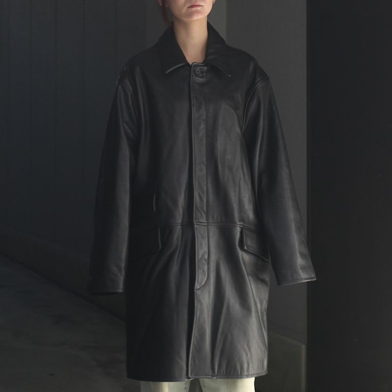 YOKE[ヨーク]のレザーバルマカーンコートです。