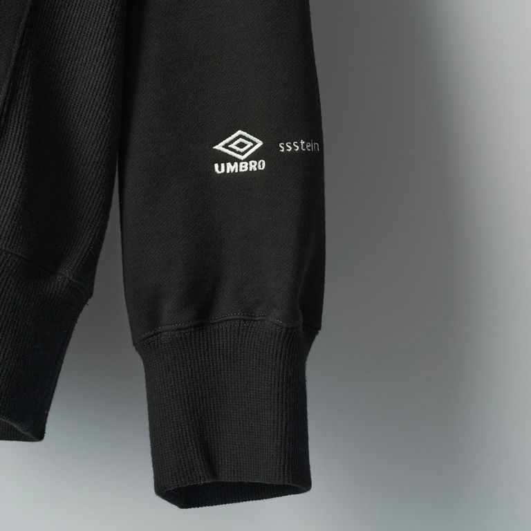 目面の美しい表面感と、シルケット加工による光沢感、適度のハリ感が特徴的です。左胸、左袖にそれぞれUMBROとsssteinのロゴが施されています。幅広いシーズンでご愛用いただけるお奨めアイテムとなっております。