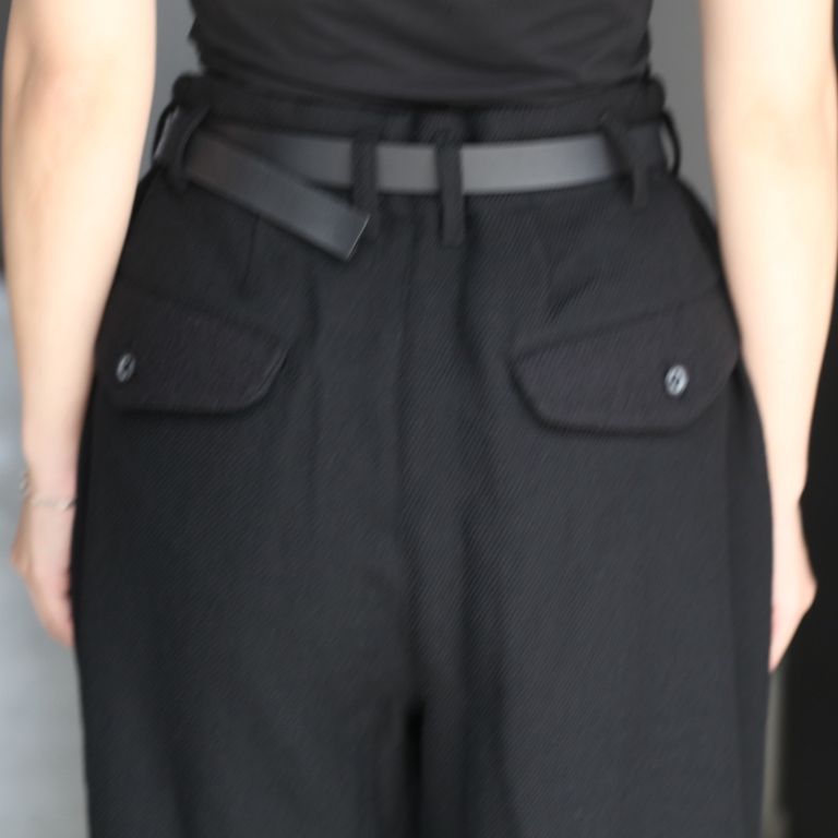 尾州産の上質なウール素材を使用し製作を行なった本作。ゆとりのあるツータックのワイドスラックスです。