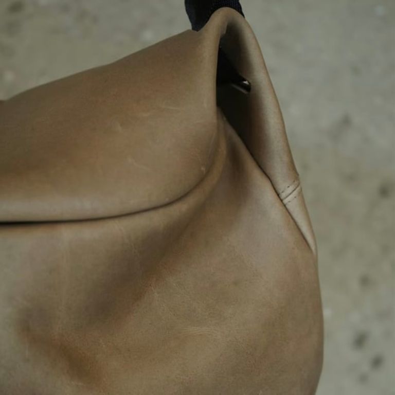 レザーには革をなめす段階で防水液を染み込ませています。革内部まで浸透しているので、防水効果は吹き付けのものとは比較にならないほど長寿命です。よりミニマムなデザインにする為、革の上部にホールを設けナイロンテープを通すデザインを採用しました。レザー特有の経年変化も愉しんでいただけます。幅広いシーズンでご愛用いただけるお奨めアイテムとなっております。