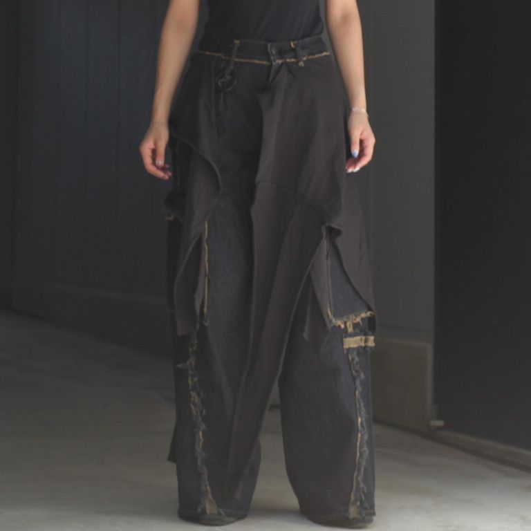 【残り一点】Slash Seam Twist Cargo Jeans with Wrapped(COALMINE RIGID)