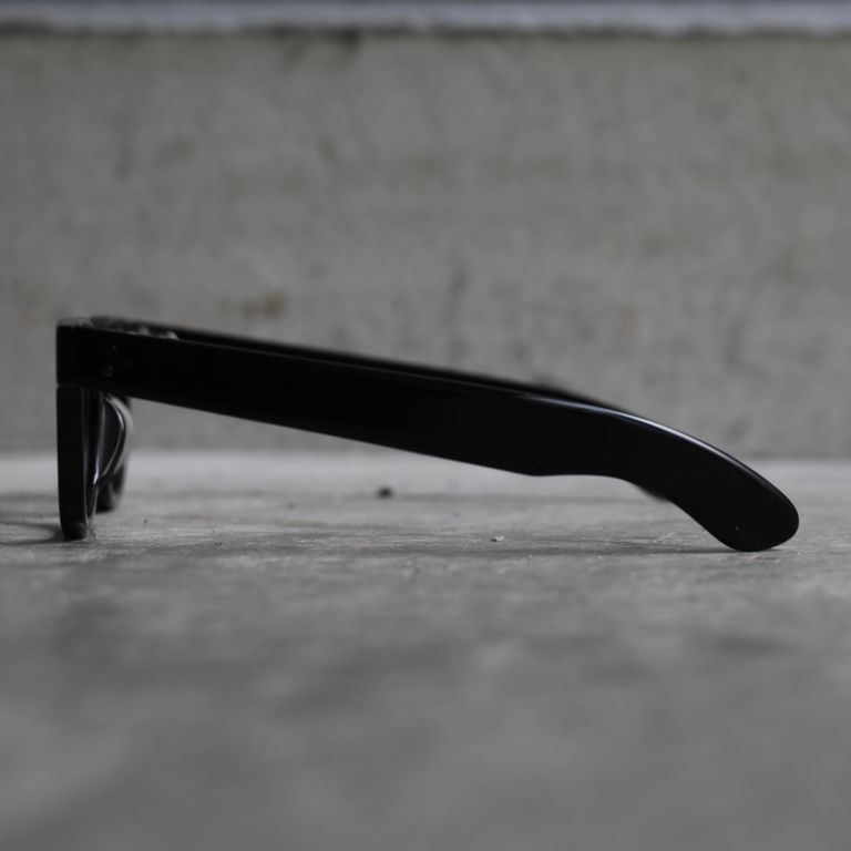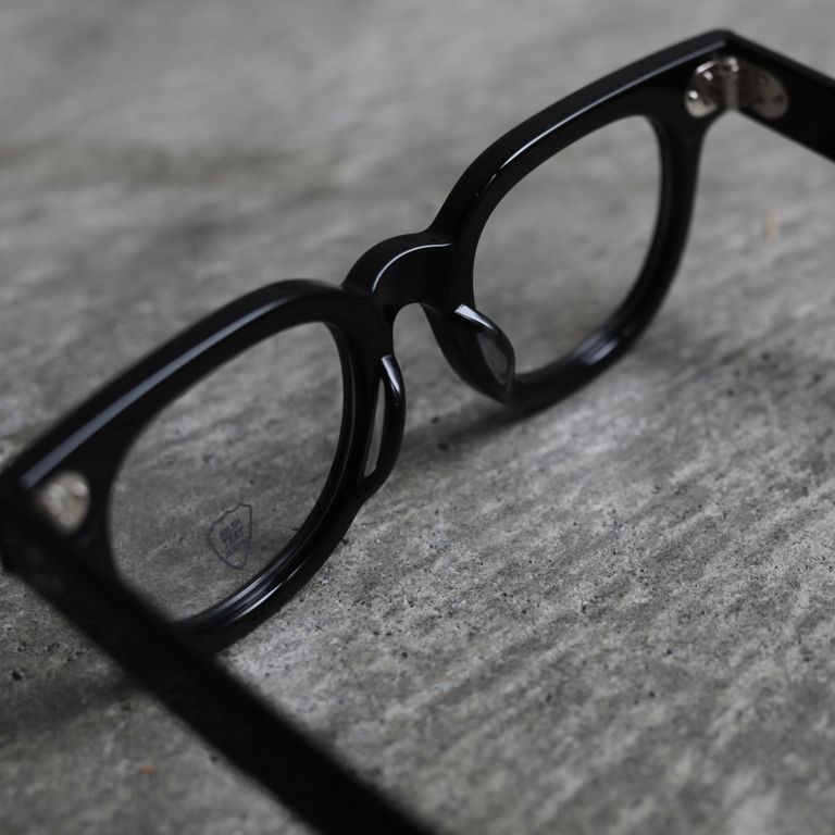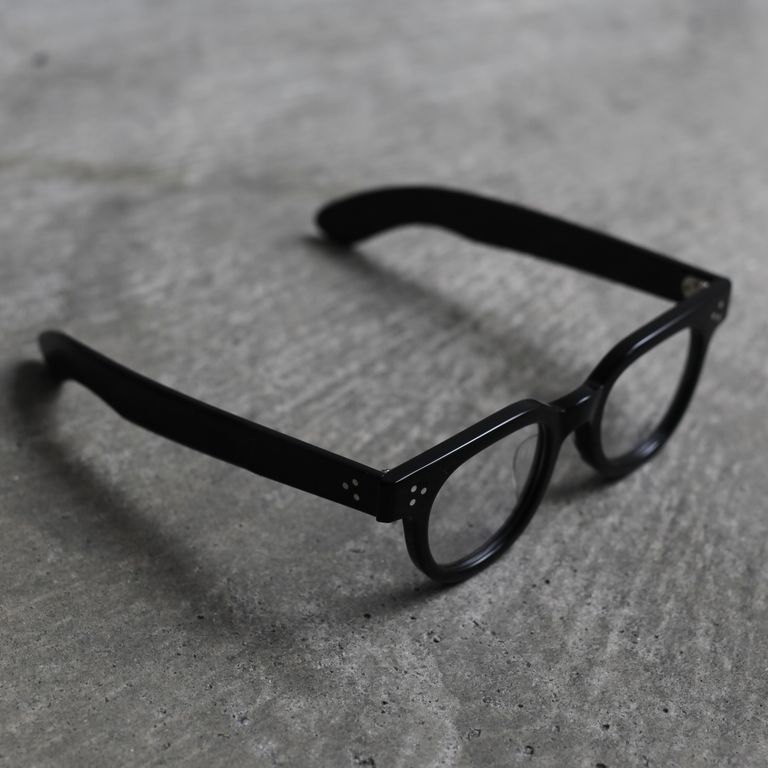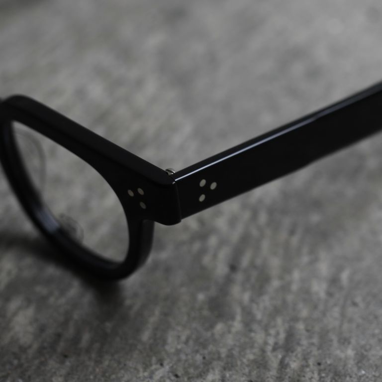 フロントの3点カシメ鋲、幅広のテンプル、テンプルエンドのエッジ感など主張が強いディテールですが、フロントからテンプルにかけての流れるような美しいラインも併せ持っています。オールシーズンでご愛用いただけるお奨めアイテムとなっております。