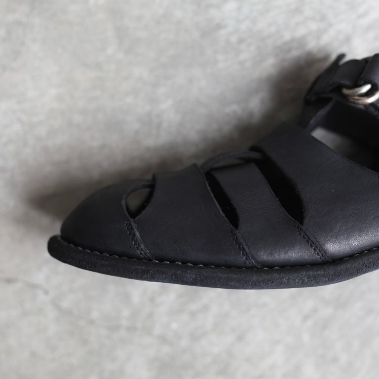 新入荷 残りわずか 2026SS COLLECTION ラスト1点 UNISEX GUIDI 【残り一点】99SND(FULL GRAIN HORSE LEATHER) ¥167,090 税込 4,557 ポイント還元 発送目安日:2-3営業日 この商品は 送料無料 でお届けします 注文 サイズ(採寸)情報 質問する お気に入り EU 日本サイズ(目安) ヒール高さ EU41 25.5cm 2cm EU42 26.5cm 2cm 商品説明 GUIDI[グイディ]の99SNDです。同ブランド定番人気の本作。程よいハリ感で経年変化も楽しめる上質なホースフルグレインレザーを使用したグルカサンダルです。着用前はフラットな質感ですが着用するとアッパー部分にシワが生まれ、自分だけのオリジナルの経年変化が楽しめます。ある程度履き込めばシワが形成された状態を保ちます。GUIDIのレザーは着用するごとに初めとはまったく雰囲気が変わり長い期間楽しんで頂けます。レザー特有の経年変化も愉しんでいただけます。オールシーズンでご愛用頂けるアイテムとなっております。付属品についてGUIDIオリジナルボックス※箱や包装の軽微な破損につきまして、商品に問題が無い場合は発送させていただいておりますので予めご了承いただきますようお願いいたします。 GUIDI[グイディ]についてDESIGNER : Ruggero Guidi氏FROM : ITALYFOUNDED : 1896年1896年、CONCERIA GUIDIE ROSELLINI(コンチェリア グイディ ロゼリーニ)が設立。それから100年以上に渡って技術を蓄え、2005A/WにGUIDI(グイディ)がスタート。イタリアのトスカーナ地方でレザータンニングのスペシャリストとしての地位を確立した。GUIDIのなめし工場はPrada(プラダ)やMaison Margiela(メゾン マルジェラ)、Rick Owens(リック・オウエンス)といったブランドのレザーを創り、レザー生産で常に繁栄してきた。「革への情熱と伝統への敬意」これがGUIDIの理念であるように、良質な感触を表現する為の「鞣し手法」は中世から伝わる極めて伝統的な手法を用いています。C-DIEM(カルペディム)やCAROL CHRISTIAN POELL(キャロル・クリスチャン・ポエル)にも素材提供していたと言われている。常にブランドが求める特質な革を作り上げるその技術は世界中のブランドから信頼を集めている。「伝統技術と先進技術の完璧な調和を図る事」、つまり大量生産でなく伝統技術を織り交ぜた独特な作品を作る事こそがRuggero Guidiの拘りである。その為、近年ではモダンなトレンドを取り入れたアイテムも増えてきています。突出した手作業から生まれるストレスを感じさせないその感覚は所有者だけが味わう事ができる唯一の特権と言える。GUIDIのプロダクトは最高の素材と技術を使って作られているが、銀行員が仕事に、あるいは弁護士が結婚式に履いて行くようなドレッシーな靴ではないし、カウボーイ気取りの人間やヴィンテージのワークウェアの愛好家が好む粗野な感じのものでもない。独自のものづくりの気概を感じさせ、履き込むごとに持ち主独自の個性をまとっていくタイプの靴であり、価格の高さに反して、ラグジュアリー感を全面に主張してはいない。逆に、そうしたものをやんわりと揶揄しているかのような存在感こそがGUIDIの靴の魅力です。GUIDIは何世紀にもわたる職人技の伝統と現代的なアプローチ、 美的感覚を融合させており、毎シーズン、ファッション業界の通な人たちがこぞって求める靴を生み出し続けています。 ATTENTION(天然素材の革について) 当店で展開しているレザーアイテムはブランドと共に検品を行い、良品アイテムをお届けしております。天然皮革に付き物の小傷、シミ、トラなどを天然素材の証です。生きていた証であるそれぞれの個体の持つ特徴として、革とはこういうものであると感じて頂けますと幸いです。(生産過程での小傷や皺を含む。)なお、これらの症状は天然物には大なり小なりあるものです。下記症状によるレザーアイテムですので、基本的に返品・交換(下記記載の初期日焼け・剥ぎ取り穴以外)はお受けしておりませんので、あらかじめご了承ください。合成皮革(近代的なフェイクレザー)と異なる、自然の恵みである天然皮革をお愉しみ頂けますと幸いです。_ 血筋について皮革の吟面に浮き出ている稲妻のような血管模様です。まさに生きていた証であり、比較的よく見受けられます。_ トラについて首回りに良く見受けられる深いしわの跡がそのまま表れています。(イタリアンレザーでは、トラがあればあるほど美しいと表現されるほど、天然皮革のワイルドさを醸し出しています。)_ バラ傷について生きていた時に擦れたり喧嘩したりしたときの小傷です。個体によって深さや長さ、大小様々です。_ 色ムラについて仕込みの時期や気温などにより染料やその他薬剤の入り方に変化が生まれます。皮革は一枚一枚職人が手作業で作り上げているので、多少の染色ムラやロットブレが起こりやすい資材です。合成皮革には見られない、天然ものならではの症状です。_ 虫刺されについて生前の虫刺されやひっかき傷が完全治癒せずに、軽いヘコミ・クレーターのように残っている場合がございます。_ 穴について※検品時に