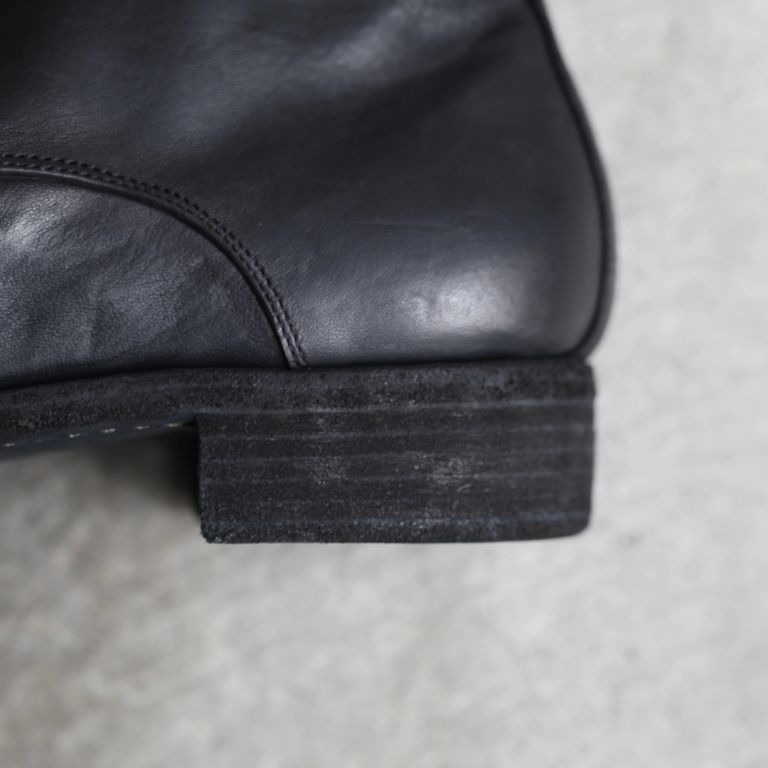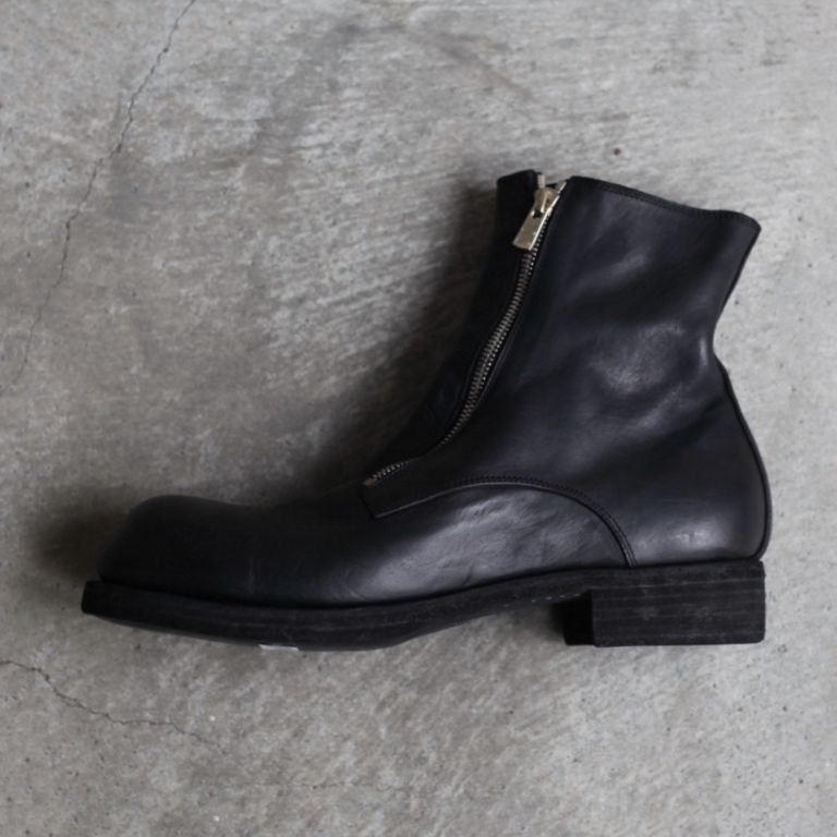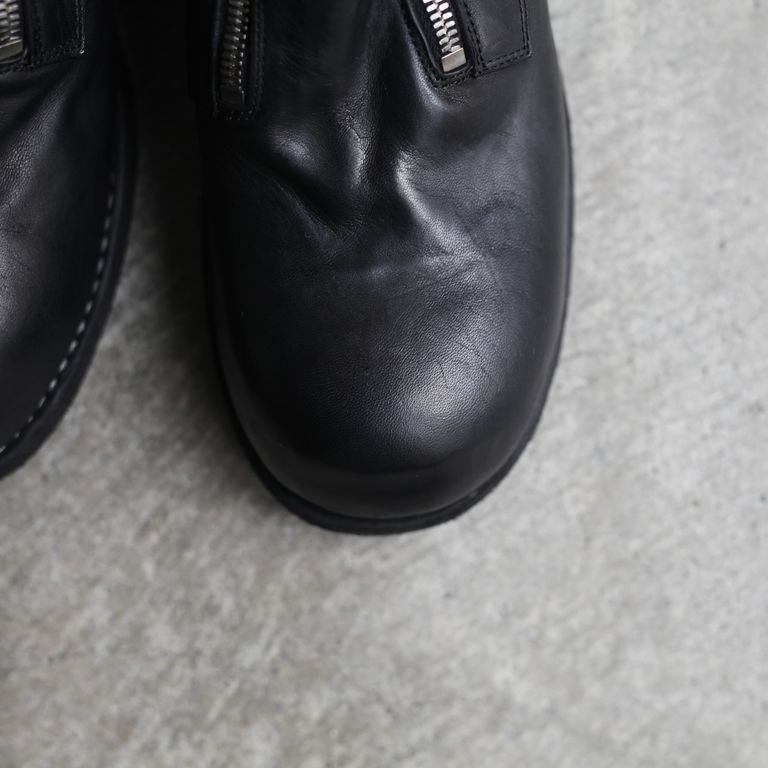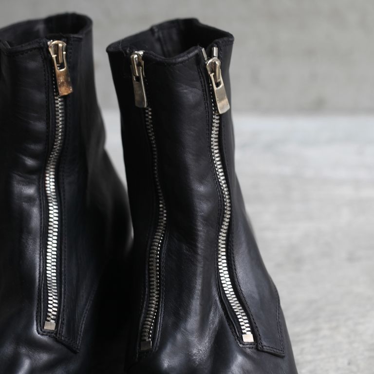 新入荷 残りわずか 2026SS COLLECTION ラスト1点 UNISEX GUIDI 【残り一点】GR07FZ(FULL GRAIN HORSE LEATHER) ¥265,100 税込 7,230 ポイント還元 発送目安日:2-3営業日 この商品は 送料無料 でお届けします 注文 サイズ(採寸)情報 質問する お気に入り EU 日本サイズ(目安) EU41 26cm EU41.5 26.5cm EU42 27cm EU42.5 27.5cm EU43 28cm 商品説明 GUIDI[グイディ]のGR07FZです。同ブランド定番人気の本作。程よいハリ感で経年変化も楽しめる上質なホースフルグレインレザーを使用したダブルフロント型のジップアップブーツです。歩いていても比較的動きの少ないフロントにジップを設置することでジップへの負荷を減らし、着脱がしやすい理にかなったデザイン。足に吸い付くようなフィット感も魅力。ジップはYKK社の中でも最高級ファスナーのEXCELLAを使用しております。こちらのファスナーはエレメント1つ1つに入念な磨きをかけており、引き手はGUIDIのロゴ入りのオリジナル。そこに製品染めが施されている為、エイジングされた雰囲気に仕上がっております。着用前はフラットな質感ですが着用するとアッパー部分にシワが生まれ、自分だけのオリジナルの経年変化が楽しめます。ある程度は着込めばシワが形成された状態を保ちます。GUIDIのレザーは着用するごとに初めとはまったく雰囲気が変わり長い期間楽しんで頂けます。レザー特有の経年変化も愉しんでいただけます。オールシーズンでご愛用頂けるアイテムとなっております。付属品についてGUIDIオリジナルボックス※箱や包装の軽微な破損につきまして、商品に問題が無い場合は発送させていただいておりますので予めご了承いただきますようお願いいたします。 GUIDI[グイディ]についてDESIGNER : Ruggero Guidi氏FROM : ITALYFOUNDED : 1896年1896年、CONCERIA GUIDIE ROSELLINI(コンチェリア グイディ ロゼリーニ)が設立。それから100年以上に渡って技術を蓄え、2005A/WにGUIDI(グイディ)がスタート。イタリアのトスカーナ地方でレザータンニングのスペシャリストとしての地位を確立した。GUIDIのなめし工場はPrada(プラダ)やMaison Margiela(メゾン マルジェラ)、Rick Owens(リック・オウエンス)といったブランドのレザーを創り、レザー生産で常に繁栄してきた。「革への情熱と伝統への敬意」これがGUIDIの理念であるように、良質な感触を表現する為の「鞣し手法」は中世から伝わる極めて伝統的な手法を用いています。C-DIEM(カルペディム)やCAROL CHRISTIAN POELL(キャロル・クリスチャン・ポエル)にも素材提供していたと言われている。常にブランドが求める特質な革を作り上げるその技術は世界中のブランドから信頼を集めている。「伝統技術と先進技術の完璧な調和を図る事」、つまり大量生産でなく伝統技術を織り交ぜた独特な作品を作る事こそがRuggero Guidiの拘りである。その為、近年ではモダンなトレンドを取り入れたアイテムも増えてきています。突出した手作業から生まれるストレスを感じさせないその感覚は所有者だけが味わう事ができる唯一の特権と言える。GUIDIのプロダクトは最高の素材と技術を使って作られているが、銀行員が仕事に、あるいは弁護士が結婚式に履いて行くようなドレッシーな靴ではないし、カウボーイ気取りの人間やヴィンテージのワークウェアの愛好家が好む粗野な感じのものでもない。独自のものづくりの気概を感じさせ、履き込むごとに持ち主独自の個性をまとっていくタイプの靴であり、価格の高さに反して、ラグジュアリー感を全面に主張してはいない。逆に、そうしたものをやんわりと揶揄しているかのような存在感こそがGUIDIの靴の魅力です。GUIDIは何世紀にもわたる職人技の伝統と現代的なアプローチ、 美的感覚を融合させており、毎シーズン、ファッション業界の通な人たちがこぞって求める靴を生み出し続けています。 ATTENTION(天然素材の革について) 当店で展開しているレザーアイテムはブランドと共に検品を行い、良品アイテムをお届けしております。天然皮革に付き物の小傷、シミ、トラなどを天然素材の証です。生きていた証であるそれぞれの個体の持つ特徴として、革とはこういうものであると感じて頂けますと幸いです。(生産過程での小傷や皺を含む。)なお、これらの症状は天然物には大なり小なりあるものです。下記症状によるレザーアイテムですので、基本的に返品・交換(下記記載の初期日焼け・剥ぎ取り穴以外)はお受けしておりませんので、あらかじめご了承ください。合成皮革(近代的なフェイクレザー)と異なる、自然の恵みである天然皮革をお愉しみ頂けますと幸いです。_ 血筋について皮革の吟面に浮き出ている稲妻のような血管模様です。まさに生きていた証であり、比較的よく見受けられます。_ トラについて首回りに良く見受けられる深いしわの跡がそのまま表れています。(イタリアンレザーでは、トラがあればあるほど美しいと表現されるほど、天然皮革のワイルドさを醸し出しています。)_ バラ傷について生きていた時に擦れたり喧嘩したりしたときの小傷