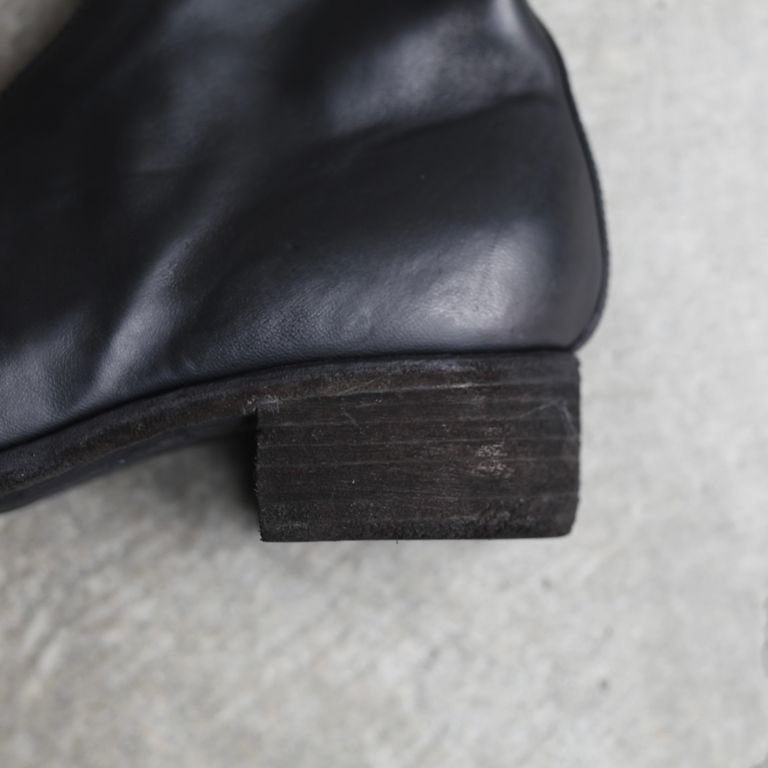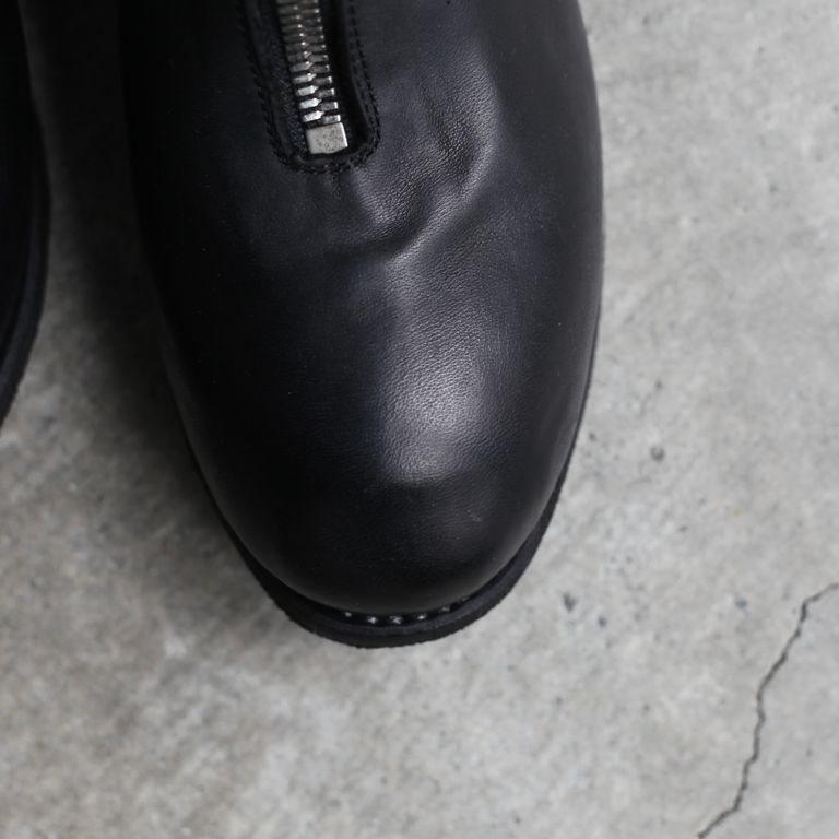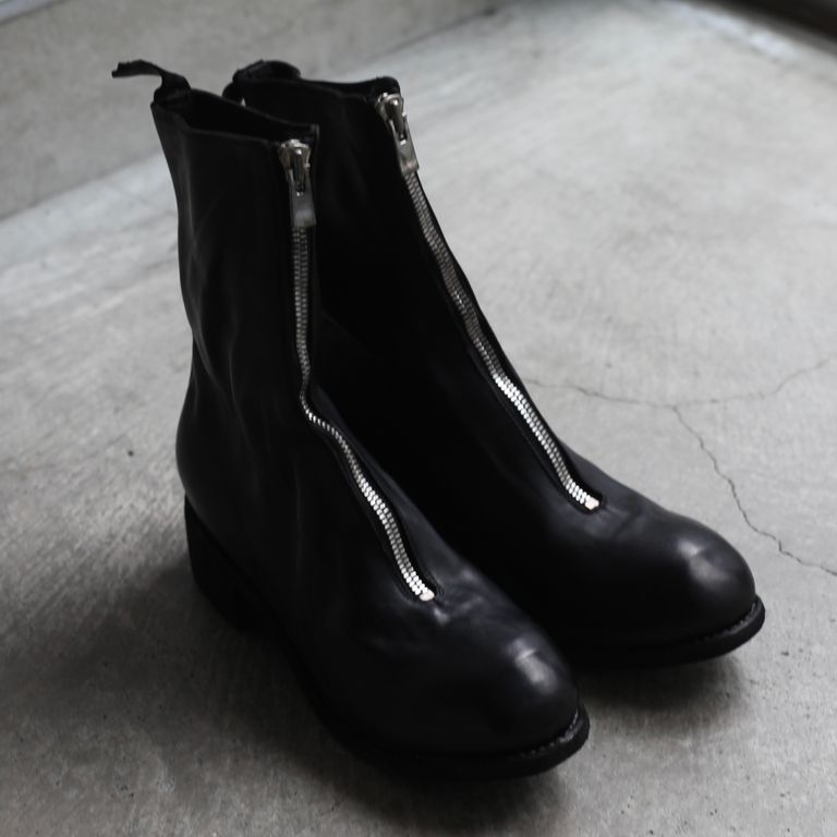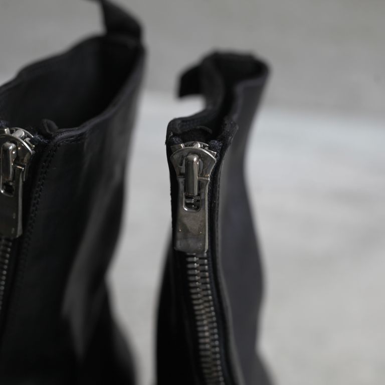新入荷 残りわずか ラスト1点 UNISEX GUIDI 【残り一点】PL2(FULL GRAIN HORSE LEATHER) ¥279,400 税込 7,620 ポイント還元 発送目安日:2-3営業日 この商品は 送料無料 でお届けします 注文 サイズ(採寸)情報 質問する お気に入り EU 日本サイズ(目安) ヒール高さ EU41 25.5cm 4.5cm EU42 26.5cm 4.5cm 商品説明 GUIDI[グイディ]のPL2です。同ブランド定番人気の本作。甲から走るセンタージップのバランスが絶妙なフロントジップブーツです。PL1のロングバージョンです。PL1の特徴的なデザインを継承しつつ、ロング丈にすることで、より存在感のある一足に仕上がっています。素材はイタリア産のホースのフルグレインレザーを使用しております。フルグレインレザーとは表面に動物の皮革のきめや傷などの自然な性質を保持しているナチュラルレザーになっており、レザーの中でも最高品質と言われています。GUIDIはイタリアの伝統的なベジタブルタンニン鞣しでゆっくりと時間をかけて皮を加工することにより柔らかさと馴染みの良さが生まれ、さらに経年変化も楽しむことができます。着用前はフラットな質感ですが着用するとアッパー部分にシワが生まれ、自分だけのオリジナルの経年変化が楽しめます。ある程度は着込めばシワが形成された状態を保ちます。GUIDIのレザーは着用するごとに初めとはまったく雰囲気が変わり長い期間楽しんで頂けます。染色はタンブラーダイ、いわゆる「製品染め」で行われています。製品染めをすることにより独特な色ムラ、レザーの表情が生まれGUIDIにしかない雰囲気に仕上がります。ジップはYKK社の中でも最高級ファスナーのEXCELLAを使用しております。こちらのファスナーはエレメント1つ1つに入念な磨きをかけるとても手間のかかったファスナーに仕上がっております。高密度に縫製もされているので耐久性も兼ね備えております。美しい輝きと滑らかな手触りを追求した最高級のファスナーになります。引き手はGUIDIのロゴ入りのオリジナルになっており、そこに製品染めが施されている為、エイジングされた雰囲気に仕上がっております。レザー特有の経年変化も愉しんでいただけます。オールシーズンでご愛用頂けるアイテムとなっております。付属品についてGUIDI裏張り用オリジナルソール付き(Vibram製)GUIDIオリジナル保存袋GUIDIオリジナルボックス※箱や包装の軽微な破損につきまして、商品に問題が無い場合は発送させていただいておりますので予めご了承いただきますようお願いいたします。 シューズのサイズ感について【普段のサイズから−0.5cm】サイズ感:普段のサイズより0.5cm下げての着用がおすすめです。当社スタッフが着用して確認したところ、縦の長さにやや余裕があり、横幅は標準的な作りです。そのため、普段のサイズではつま先に余りを感じる方や、よりフィット感を重視される方は0.5cm下げての着用をおすすめします。足に沿うようなすっきりとした履き心地で履きたい方にも適しています。※足型や履き方により、感じ方には個人差があります。 GUIDI[グイディ]についてDESIGNER : Ruggero Guidi氏FROM : ITALYFOUNDED : 1896年1896年、CONCERIA GUIDIE ROSELLINI(コンチェリア グイディ ロゼリーニ)が設立。それから100年以上に渡って技術を蓄え、2005A/WにGUIDI(グイディ)がスタート。イタリアのトスカーナ地方でレザータンニングのスペシャリストとしての地位を確立した。GUIDIのなめし工場はPrada(プラダ)やMaison Margiela(メゾン マルジェラ)、Rick Owens(リック・オウエンス)といったブランドのレザーを創り、レザー生産で常に繁栄してきた。「革への情熱と伝統への敬意」これがGUIDIの理念であるように、良質な感触を表現する為の「鞣し手法」は中世から伝わる極めて伝統的な手法を用いています。C-DIEM(カルペディム)やCAROL CHRISTIAN POELL(キャロル・クリスチャン・ポエル)にも素材提供していたと言われている。常にブランドが求める特質な革を作り上げるその技術は世界中のブランドから信頼を集めている。「伝統技術と先進技術の完璧な調和を図る事」、つまり大量生産でなく伝統技術を織り交ぜた独特な作品を作る事こそがRuggero Guidiの拘りである。その為、近年ではモダンなトレンドを取り入れたアイテムも増えてきています。突出した手作業から生まれるストレスを感じさせないその感覚は所有者だけが味わう事ができる唯一の特権と言える。GUIDIのプロダクトは最高の素材と技術を使って作られているが、銀行員が仕事に、あるいは弁護士が結婚式に履いて行くようなドレッシーな靴ではないし、カウボーイ気取りの人間やヴィンテージのワークウェアの愛好家が好む粗野な感じのものでもない。独自のものづくりの気概を感じさせ、履き込むごとに持ち主独自の個性をまとっていくタイプの靴であり、価格の高さに反して、ラグジュアリー感を全面に主張してはいない。逆に、そうしたものをやんわりと揶揄しているかのような存在感こそがGUIDIの靴の魅力です。GUIDIは何世紀にもわたる職人技の伝統と現代的