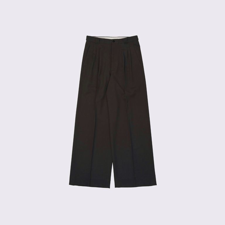 新たにメリノウールギャバジンを使用し製作を行なった本作。定番の3タックワイドトラウザーズです。
