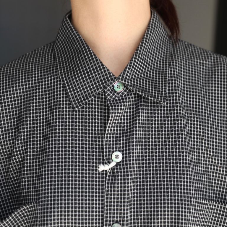 ストレッチ性が高く着心地も抜群、そして着用時のしわなどの形態変化も少なく、イージーケア性も高いのが魅力的です。ハリ感、光沢感、イージーケアを持ち併せた同ブランドにしかできないニュースタンダードシャツ地。素材のハリ感、光沢感、そして塩梅の良いシルエット、生地が生み出すドレッシー感とパターンを融合させた、唯一無二のシャツ。袖のギャザーなどよりドレスなディティールに仕上げております。タッターソールチェックを採用。