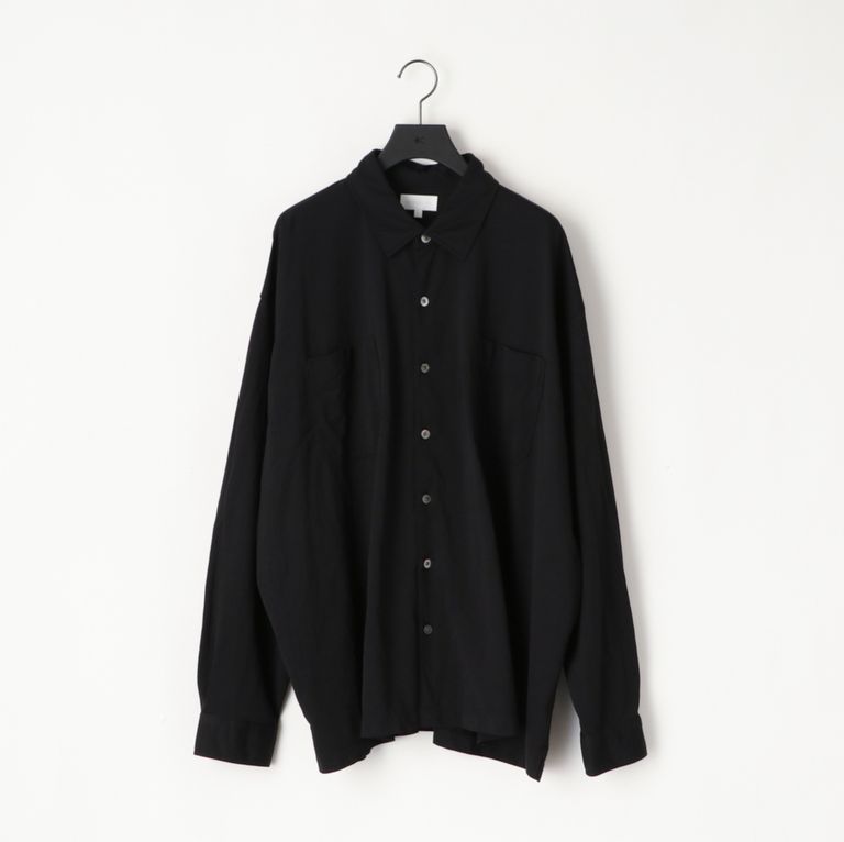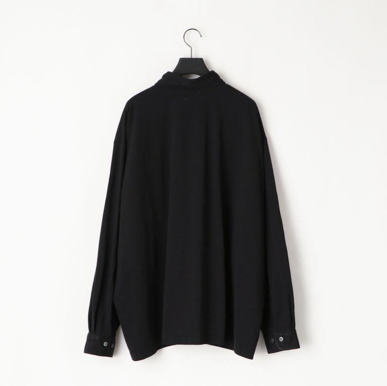 ナイロン100%ニットの夏場にピッタリな生地です。涼しすぎる素材感。 36Gという、スーパーハイゲージで、表面感のある梨地を作成。ストレッチ性が高く着心地も抜群、そして着用時のしわなどの形態変化も少なく、イージーケア性も高いのが魅力的です。ハリ感、光沢感、イージーケアを持ち併せた同ブランドにしかできないニュースタンダードシャツ地。素材のハリ感、光沢感、そして塩梅の良いシルエット、生地が生み出すドレッシー感とパターンを融合させた、唯一無二のシャツ。袖のギャザーなどよりドレスなディティールに仕上げております。
