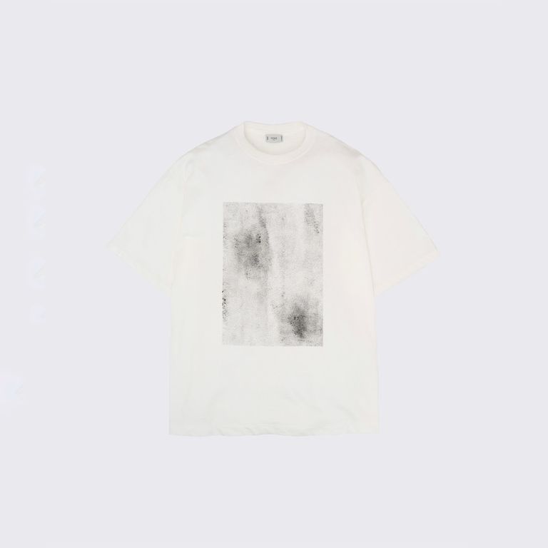 定番のオーガニックコットン天竺を使用し製作を行なった本作。手書きで削り出したような模様をフロントにプリントしたルーズフィットTEEです。