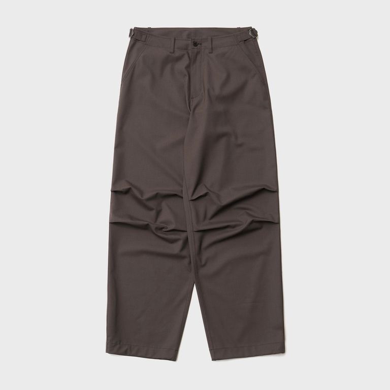 パラシュートパンツをA/O.の柔らかなシルエットとモダンなムードで再解釈した本作。ドレープ感のあるウール、ポリエステル、ゼントラの混紡生地を使用したユーティリティパンツです。