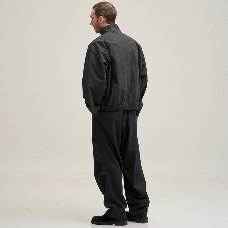 パラシュートパンツをA/O.の柔らかなシルエットとモダンなムードで再解釈した本作。ドレープ感のあるウール、ポリエステル、ゼントラの混紡生地を使用したユーティリティパンツです。