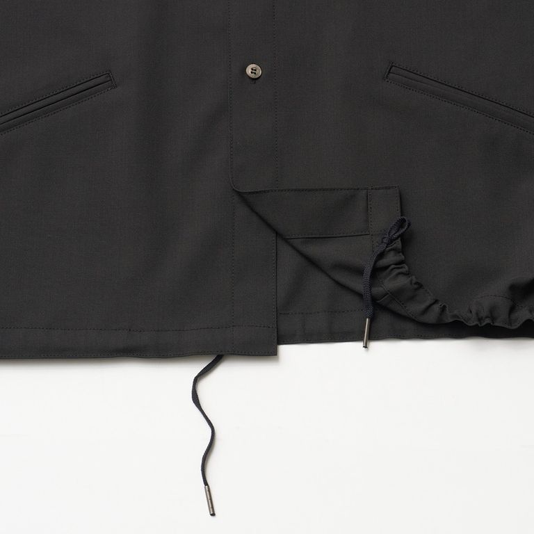 ドレープ感のあるウール、ポリエステル、ゼントラの混紡生地を使用し製作を行なった本作。A/O.の柔らかなシルエットとモダンなムードで再解釈したコーチジャケットです。