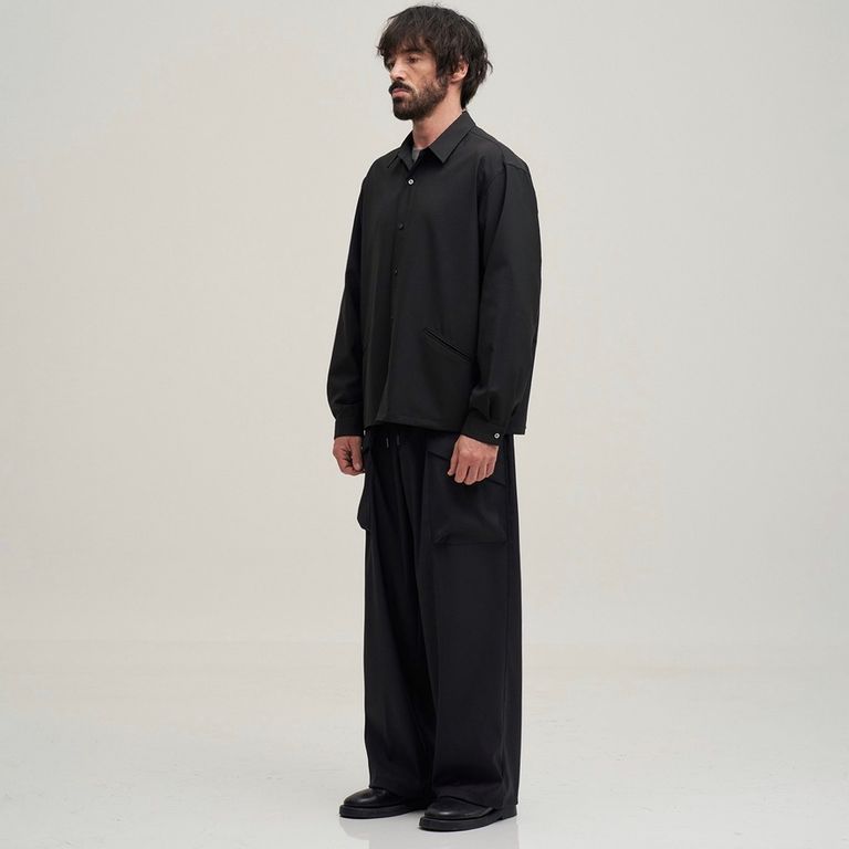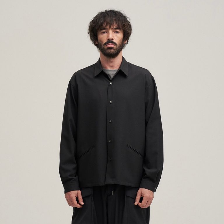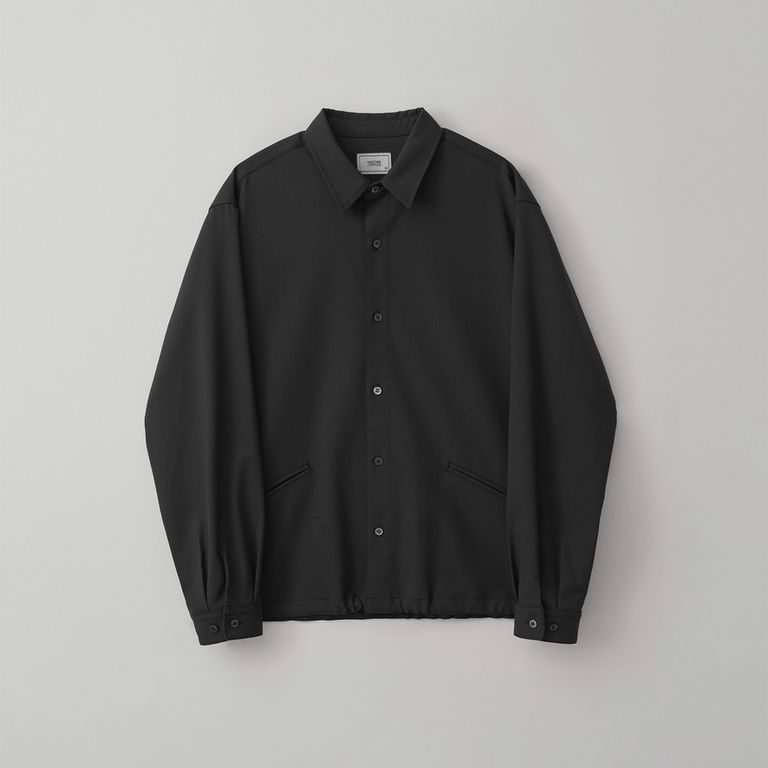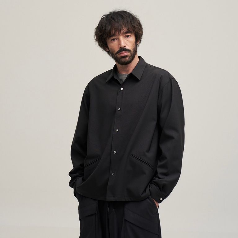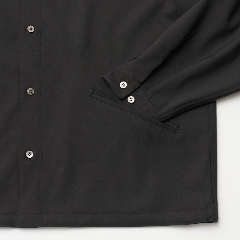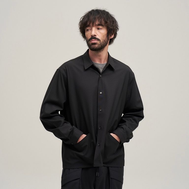 ウール配合による高級感のある表面が魅力。スパン素材であるゼントラが優れた伸縮性、回復性、形態安定性を持ち合わせています。程よいゆとりのあるフィット感とすっきりとしたシルエットで汎用性が高く、シャツの形で作られているため、インナーとしてもアウターとしても着用できます。