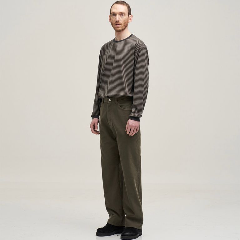 日本製Vancet社の21ウェルセゴールコーデュロイ生地を使用し製作を行なった本作。A/O.の定番キャリーオーバーアイテム、Kurt Jeansをコーデュロイバージョンで再現したワイドパンツです。