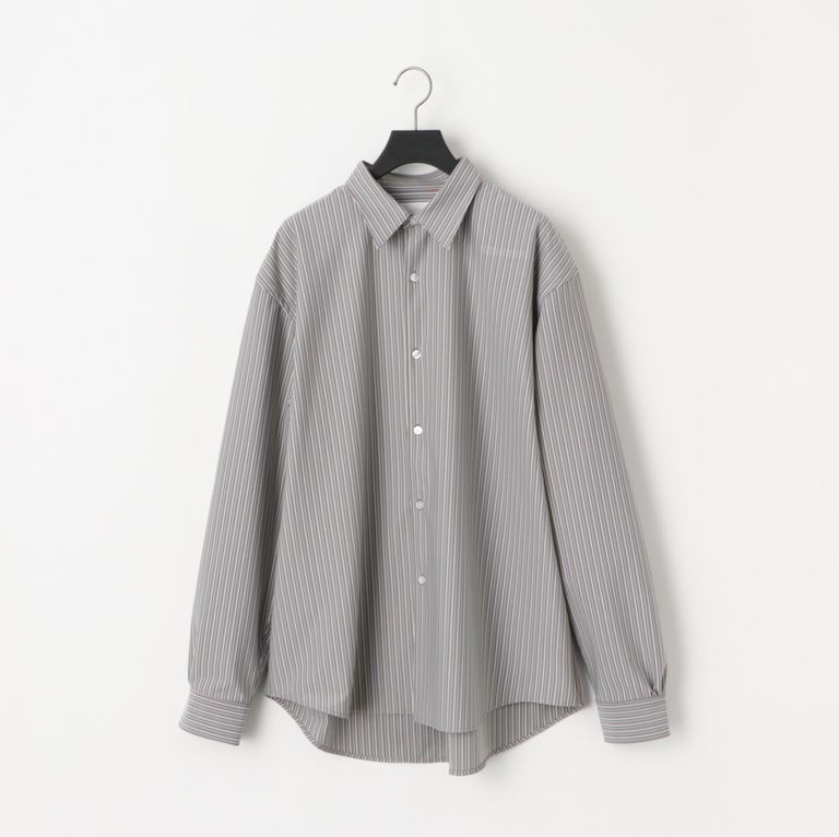 46Gというスーパーハイゲージで、タイプライターという織物の高密度平織組織を実現した本作。ゆったりとしたシルエットの“atmosphere” 空気を纏うレギュラーカラーシャツです。