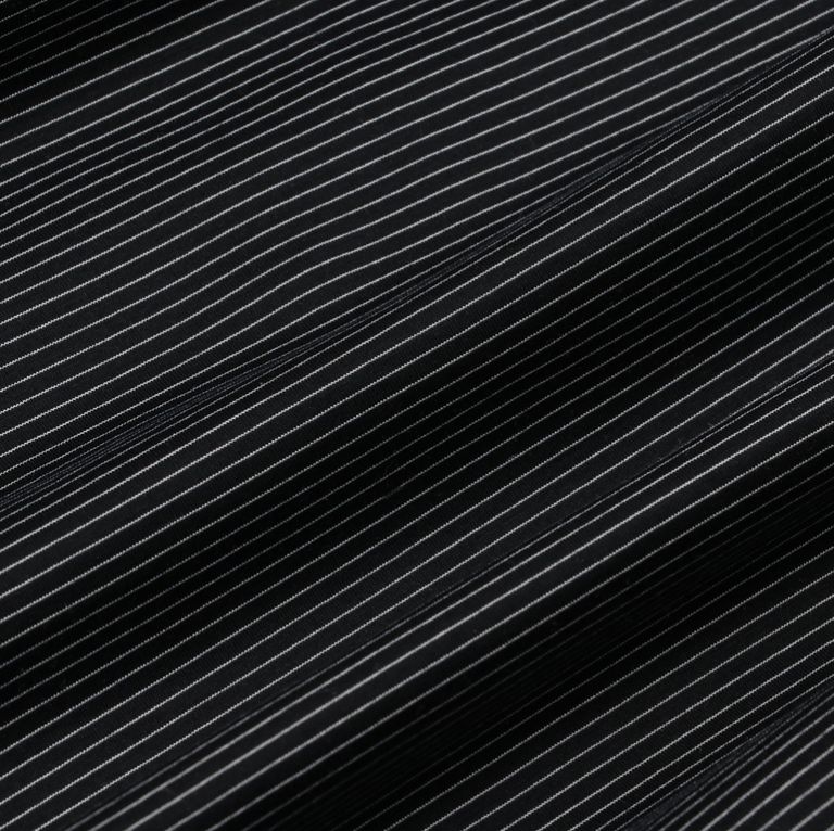綿糸の原料は、160/1という細番手リサイクルスビンコットンを双糸使い。糸もガス焼きしたものを使うことで、より光沢感と洗濯後の毛羽を抑えております。75D高捲縮リサイクルポリエステルを使用し、ストレッチ性を出しております。釦裏側にはブランドのロゴ入り。オールシーズンでご愛用いただけるお奨めアイテムとなっております。