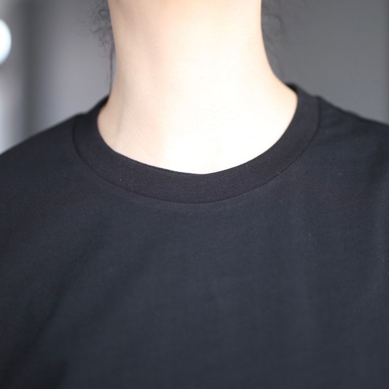 36Gジャガード機でという特注編み機で、限界まで詰めた度詰め天竺組織を使用。生地加工で、特殊加工を施すことで、毛羽を飛ばし、他に無い唯一無二なTシャツ素材に仕上げております。