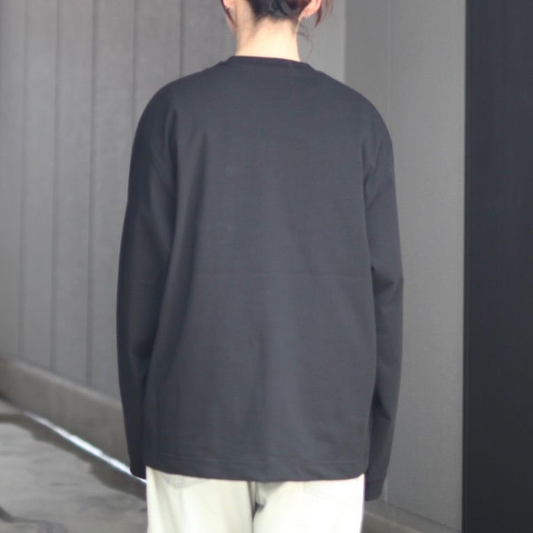 同ブランド定番人気の本作。糸で強撚加工を加え、ドライなタッチと高品質糸のヌメリ感を表現したロングスリーブTEEです。