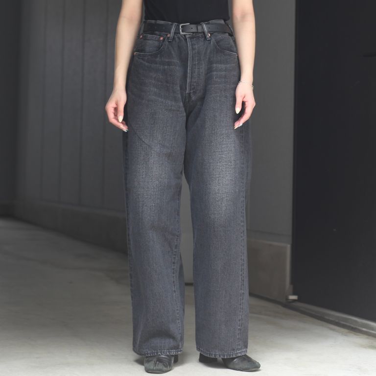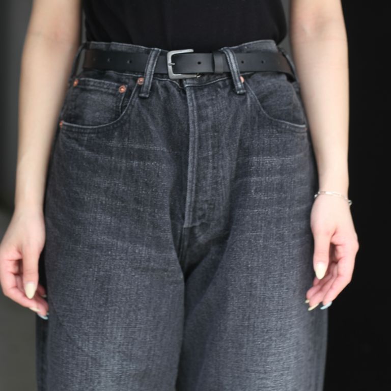 リラックス感のあるワイドなストレートシルエットが特徴。どんな服装、スタイルにも合わせ易く、非常に汎用性の高いパンツです。タックボタンは鉄製の無塗装。リベットは鉄製の銅メッキ。両者共に徐々に錆びて行く為、独特な風合いとルックスに育ちます。