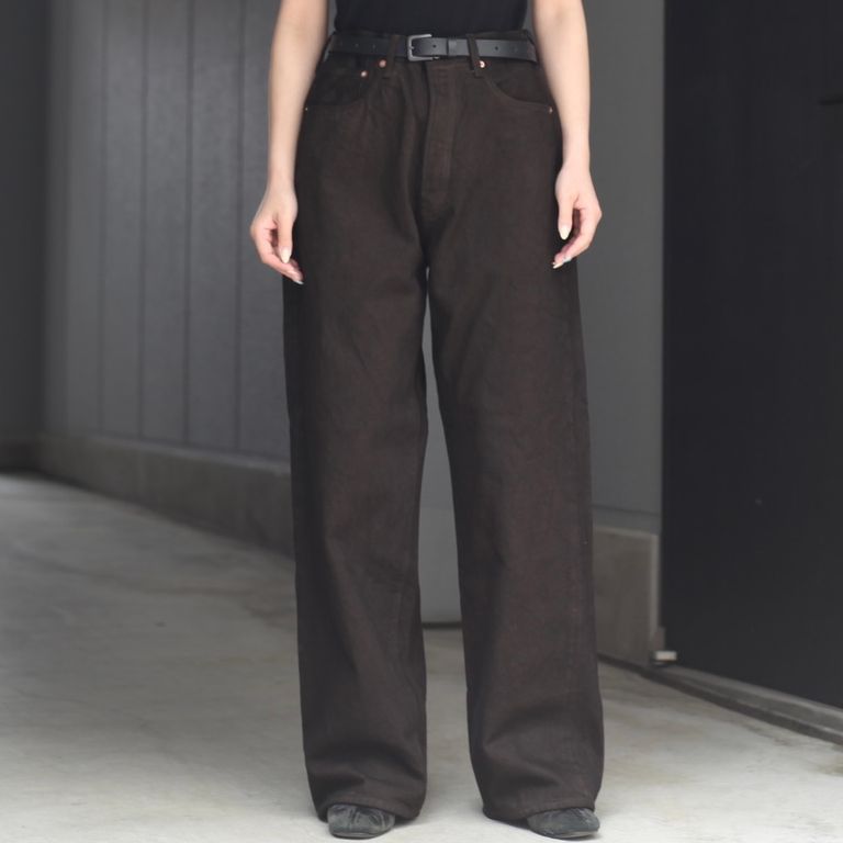 リラックス感のあるワイドなストレートシルエットが特徴。どんな服装、スタイルにも合わせ易く、非常に汎用性の高いパンツです。天然染めらしい唯一無二の経年変化が楽しめ、着用を重ね洗い込む度に自分だけの一着に育ちます。