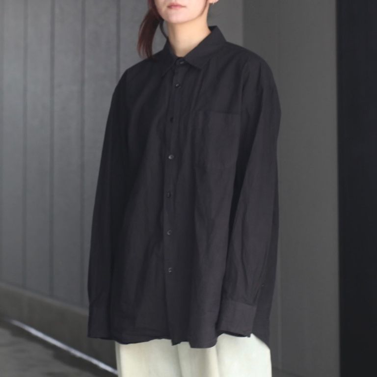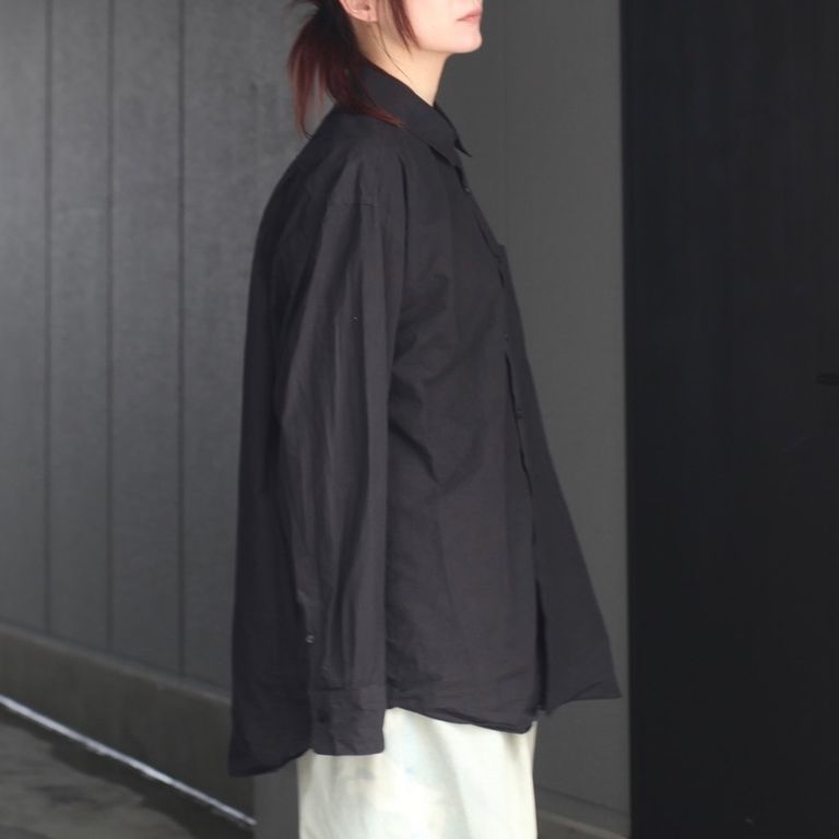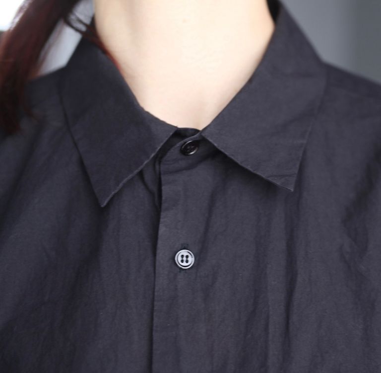 ドレスシャツらしい上品なパターンメイキングで有りながら、程よくドロップしたショルダーライン、ゆったりと広い身幅、力の抜けたルーズなサイズ感が特徴。オールシーズン着用出来る非常に汎用性の高いアイテムです。一枚着からインナー使いまでオールシーズンでご愛用いただけるお奨めアイテムとなっております。