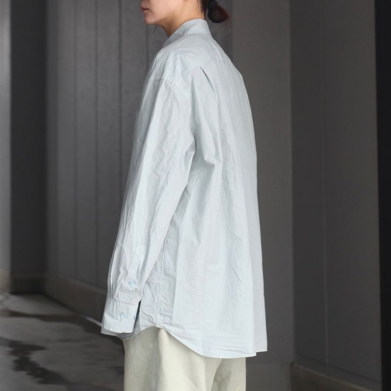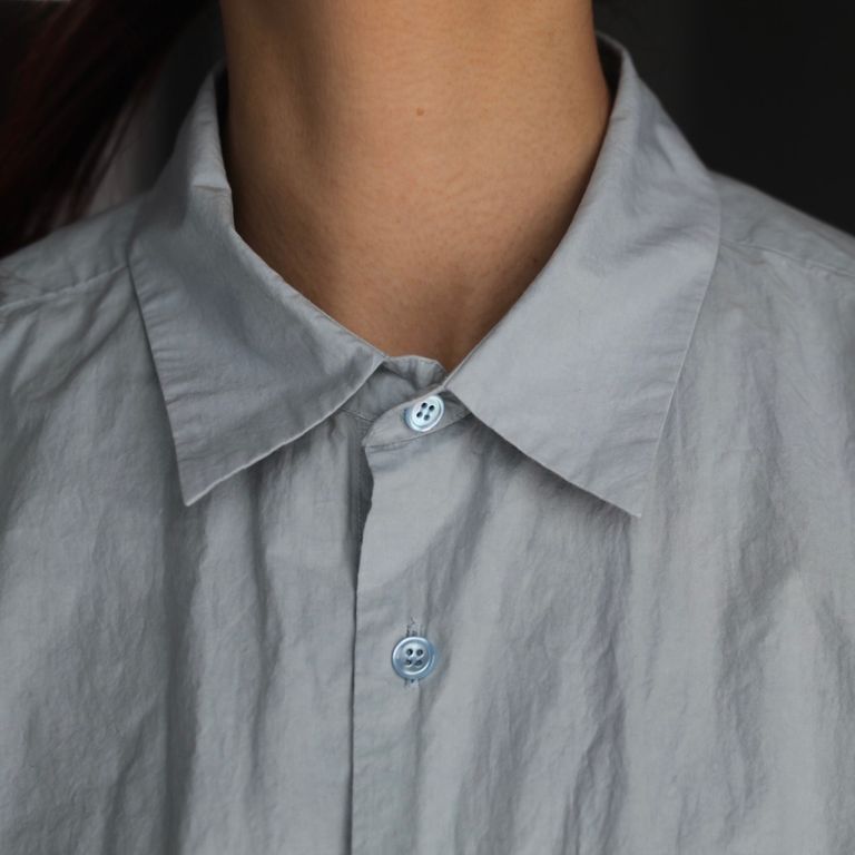 ドレスシャツらしい上品なパターンメイキングで有りながら、程よくドロップしたショルダーライン、ゆったりと広い身幅、力の抜けたルーズなサイズ感が特徴。オールシーズン着用出来る非常に汎用性の高いアイテムです。一枚着からインナー使いまでオールシーズンでご愛用いただけるお奨めアイテムとなっております。