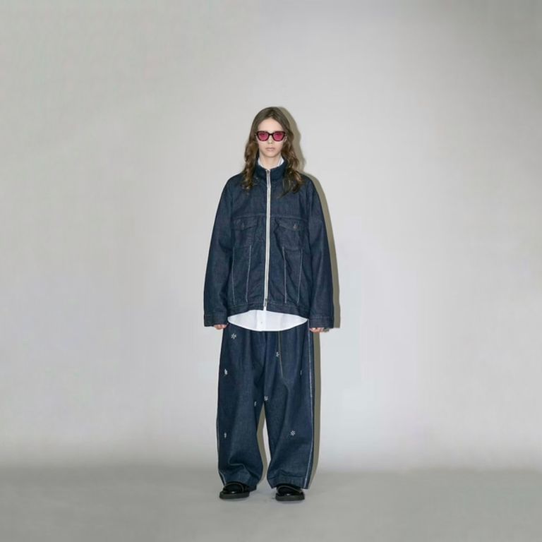MBLでは初となる海外生産商品です。デニムに施した花柄は2012awコレクションに使用したデザインを復刻しています。当時はフリーハンドで花柄を描いていただけですが、今回は一部にハンド刺繍を混ぜ込み、更にはバックパッチにも遊び心のある刺繍を施しました。