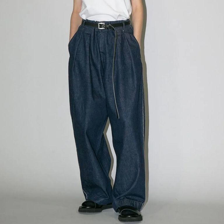 12.5ozの日本製デニム生地を使用し製作を行なった本作。ゆとりのある2タックのワイドデニムパンツです。