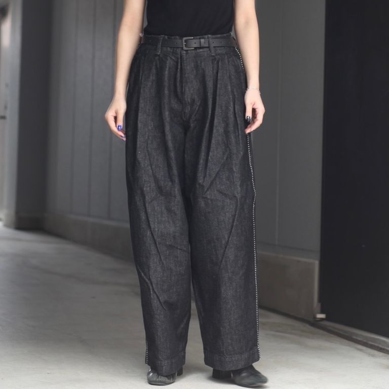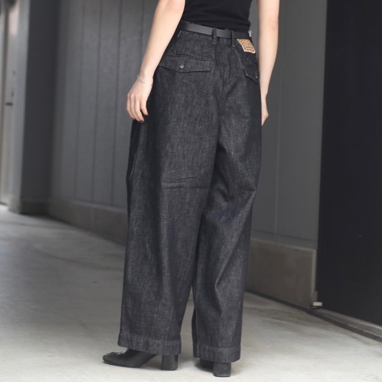 12.5ozの日本製デニム生地を使用し製作を行なった本作。ゆとりのある2タックのワイドデニムパンツです。
