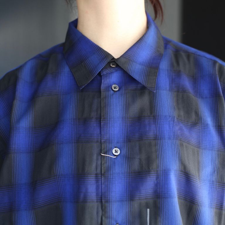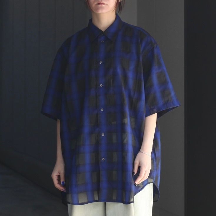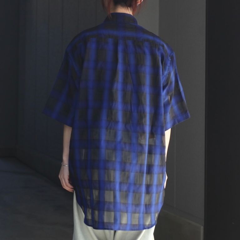 リサイクルポリを使用したシアー感のあるチェック生地を使用し製作をおこなた本作。程よくリラックスフィットなS/Sシャツです。